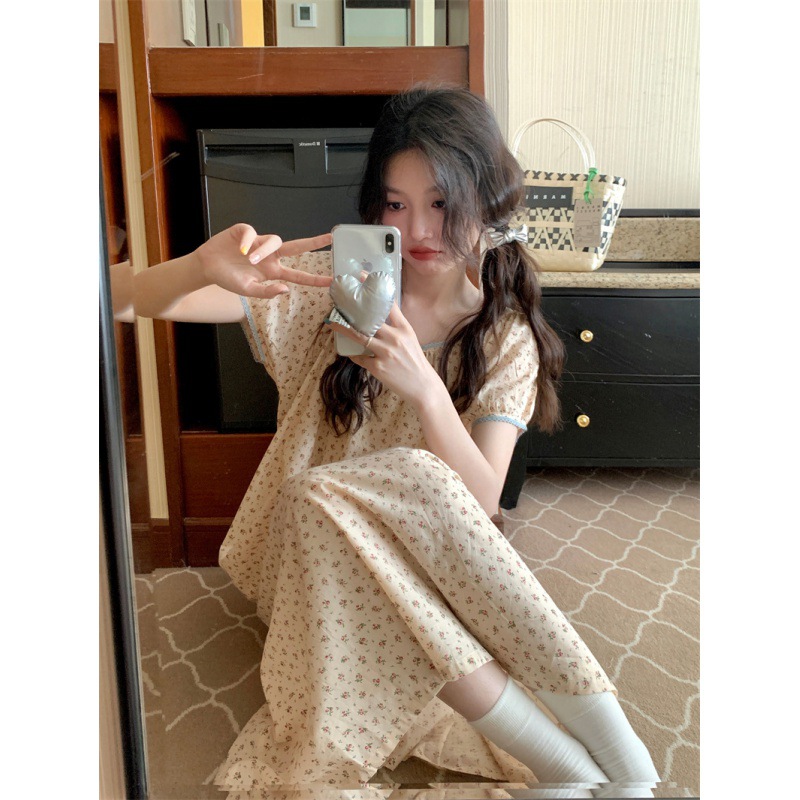 夏季新款 日系圆领小碎花短袖家居连衣裙睡裙