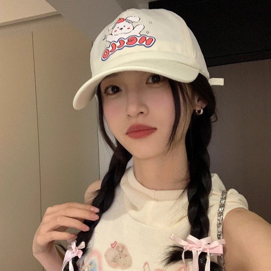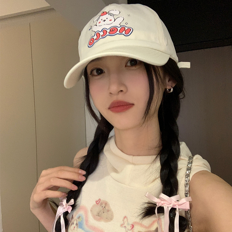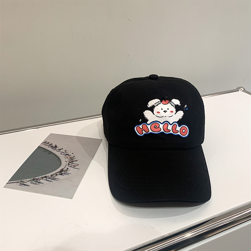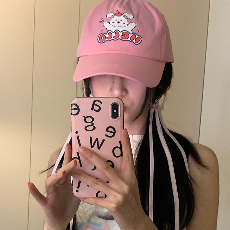 甜美风鸭舌帽女可爱小狗新款春夏韩版百搭大头围显脸小棒球帽