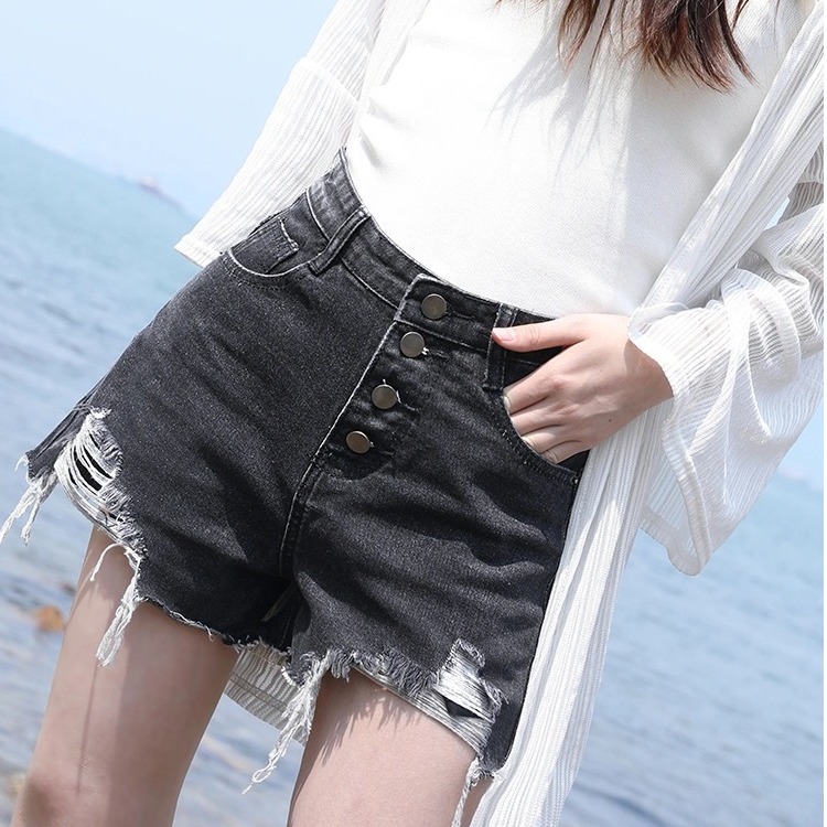 牛仔短裤女夏新款宽松高腰显瘦胖mm大码a字毛边阔腿热裤潮