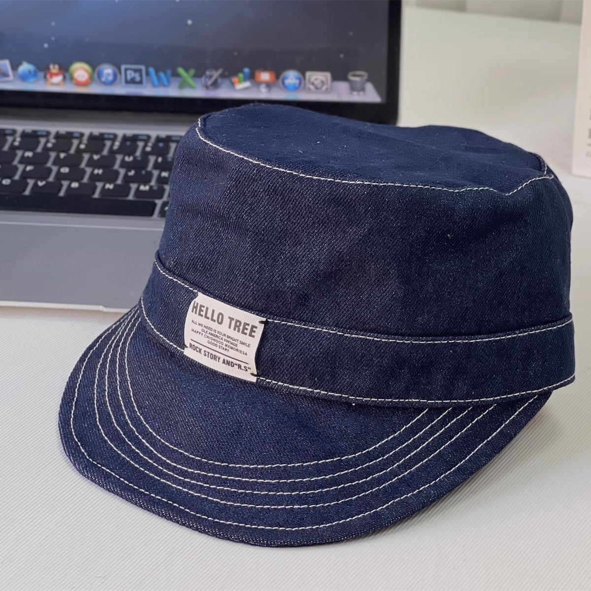 【小众马术帽】日系时髦牛仔平顶帽大头围可调节街头凹造型鸭舌帽