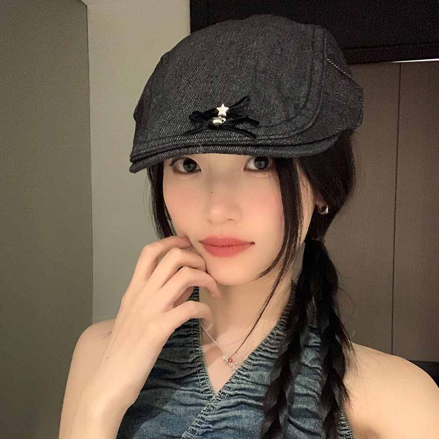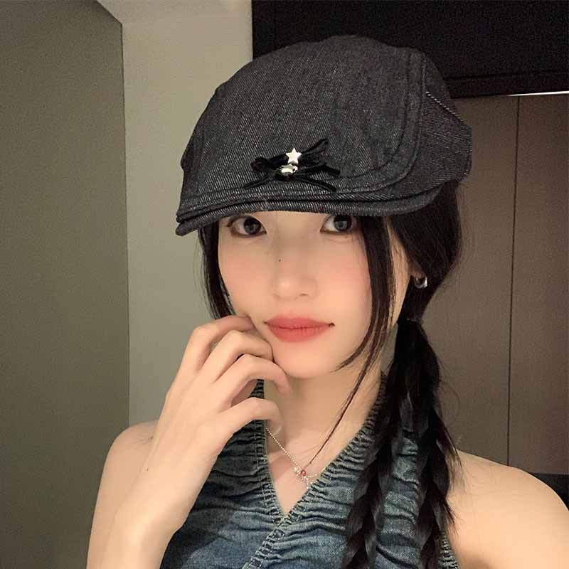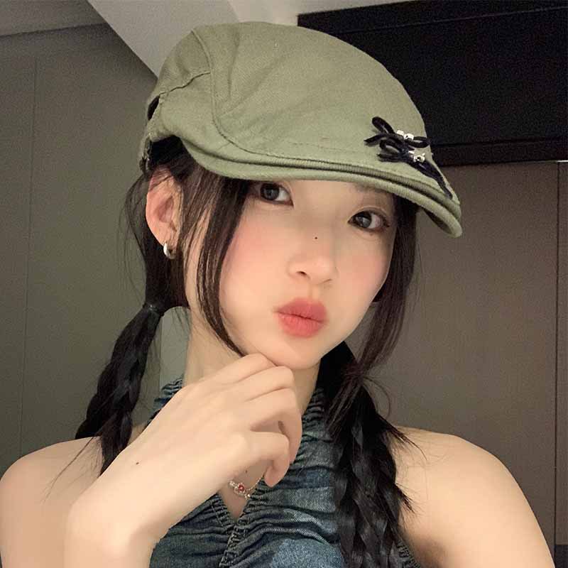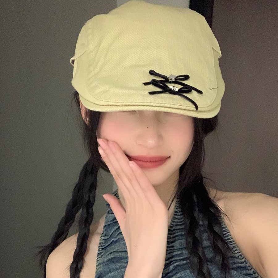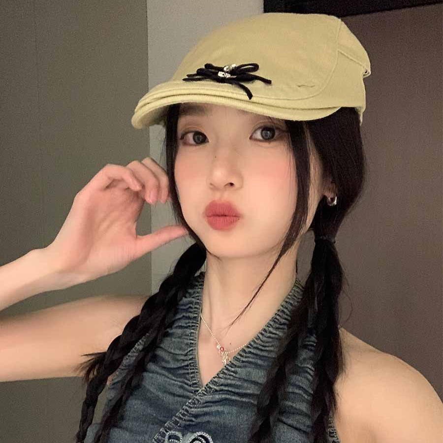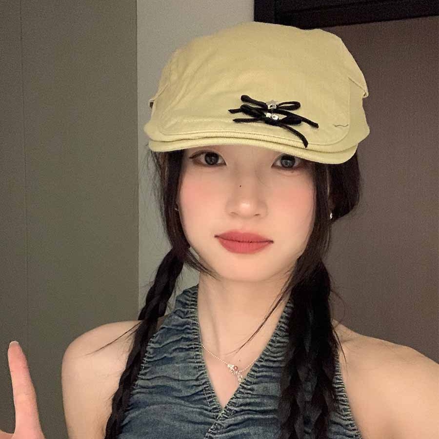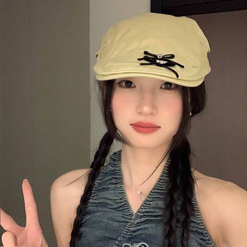 蝴蝶结前进帽女韩版复古英伦风百搭时尚鸭舌帽子显脸小防晒报童帽