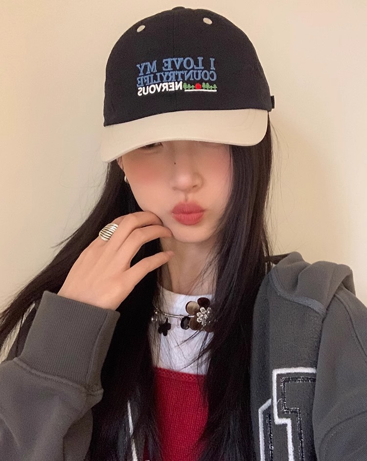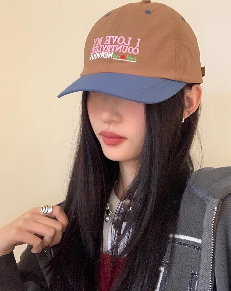 棒球帽女春夏新款大头围显脸小宽檐百搭俏皮撞色小众设计感潮帽子