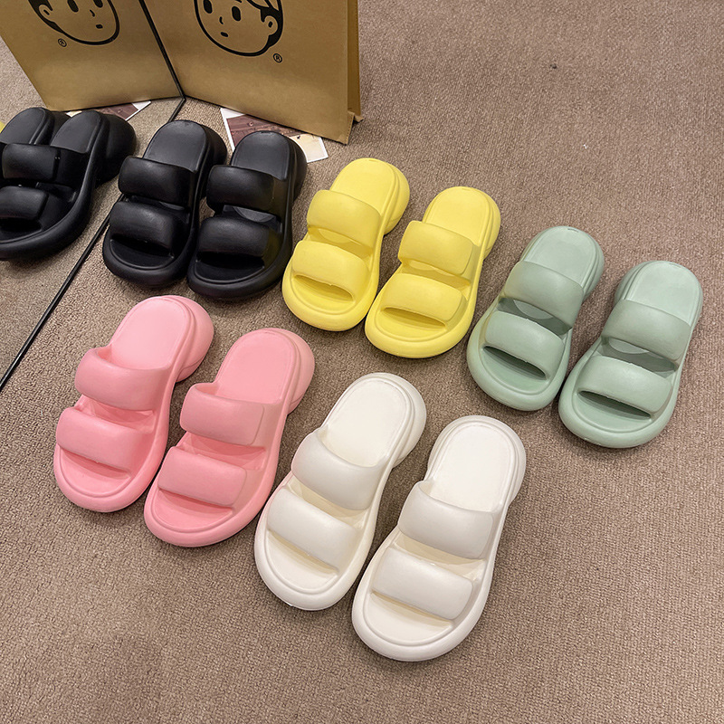 坡跟拖鞋女EVA踩屎感厚底防滑双带一字拖鞋欧美时尚休闲沙滩凉拖