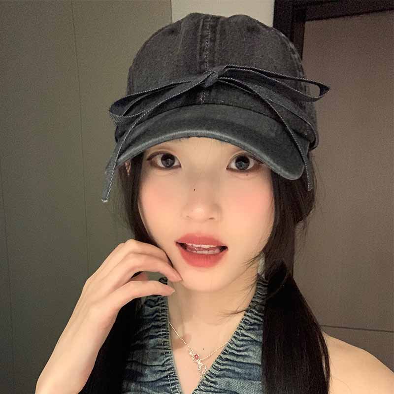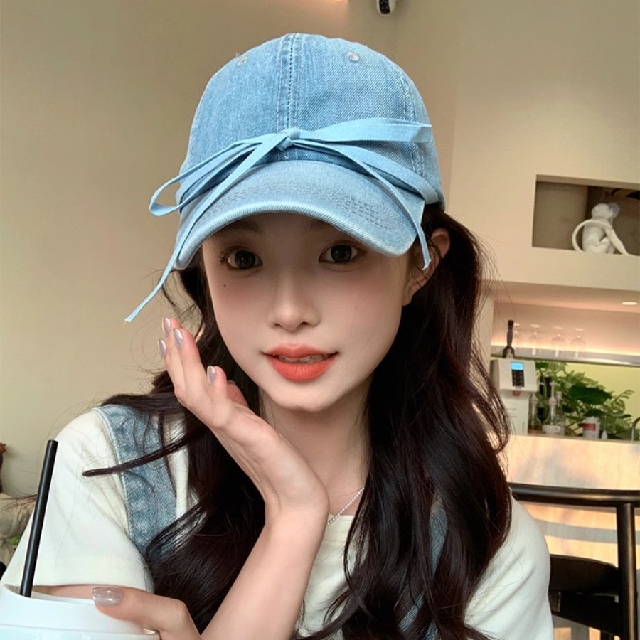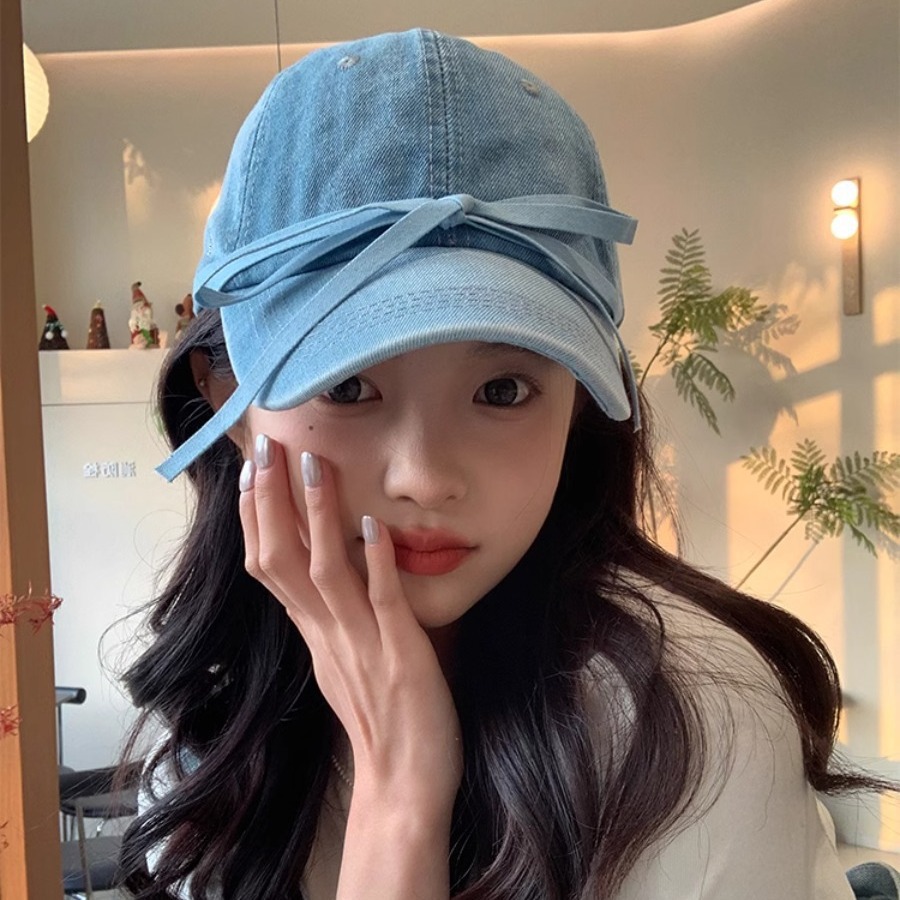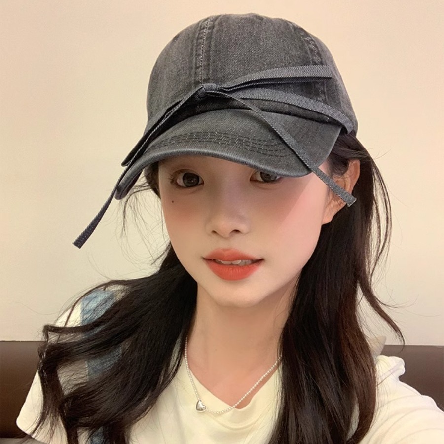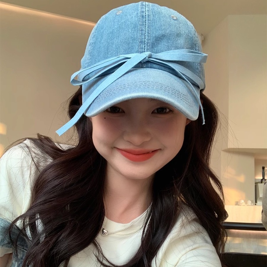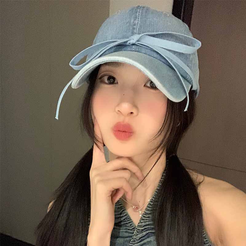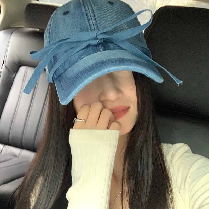 水洗牛仔复古蝴蝶结棒球帽大头围圆脸显脸小韩系简约百搭鸭舌帽