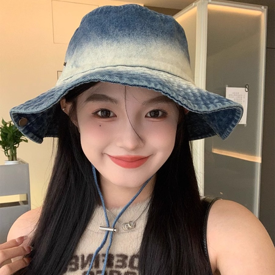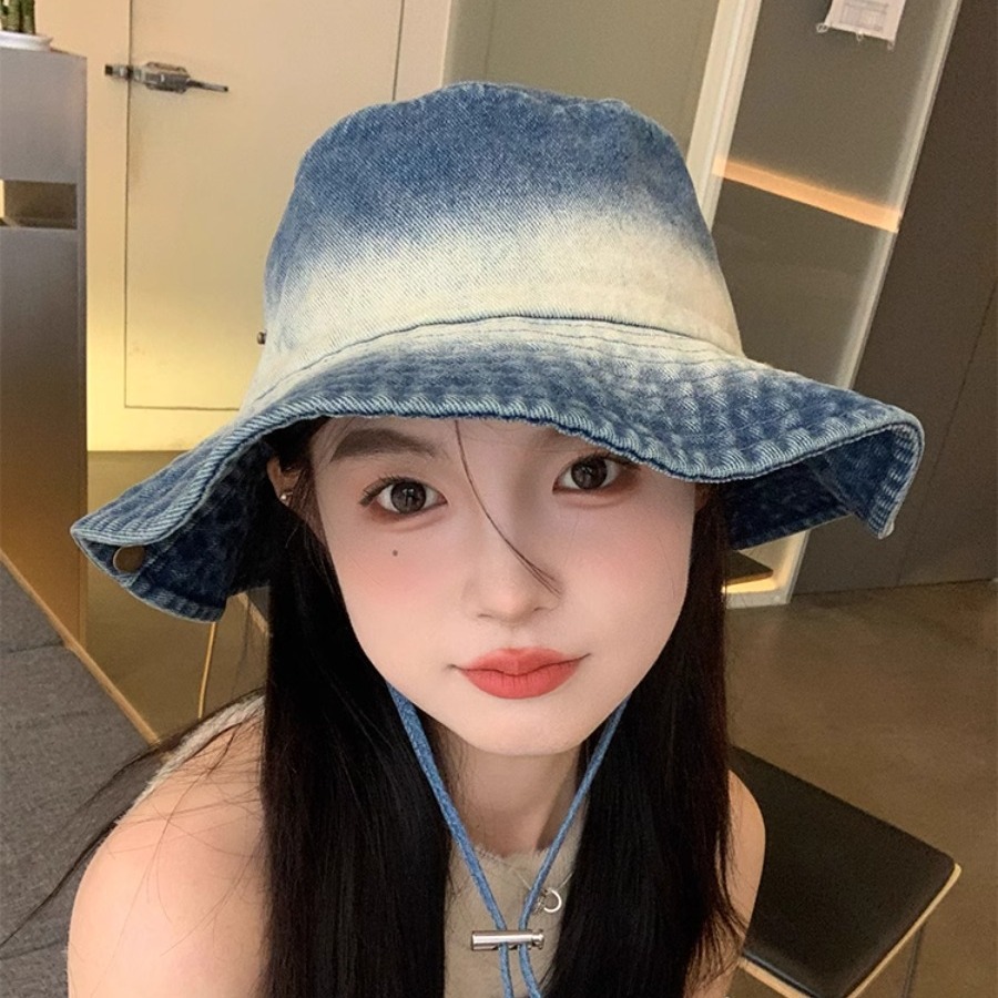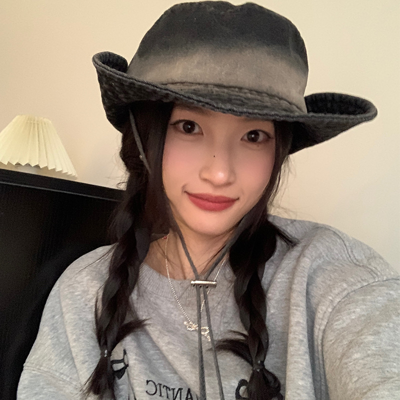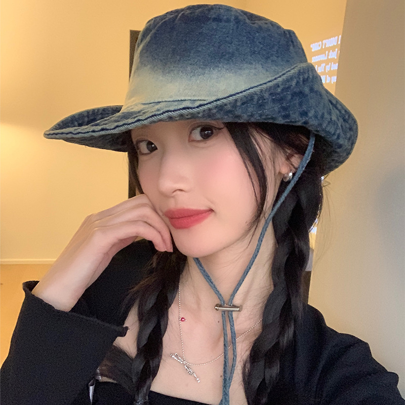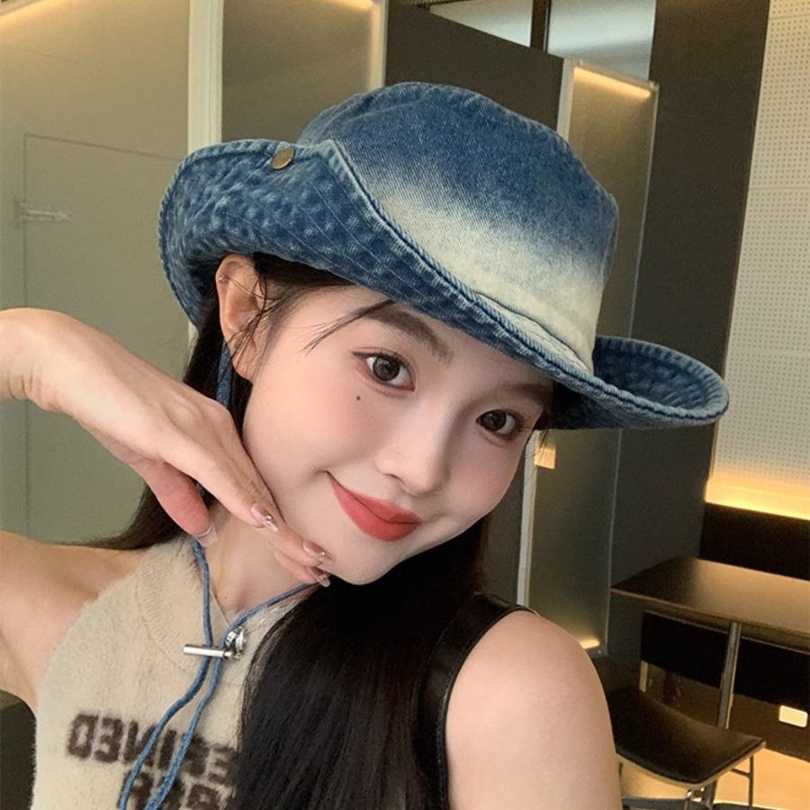 户外徒步牛仔帽扎染做旧牛仔渔夫帽子女春夏季遮阳防晒登山帽拼色