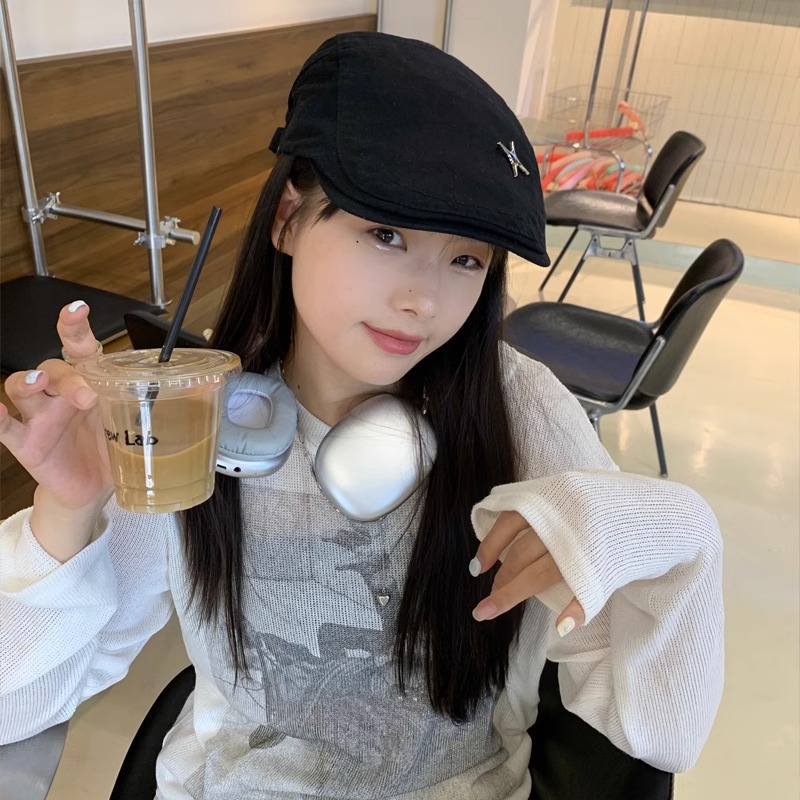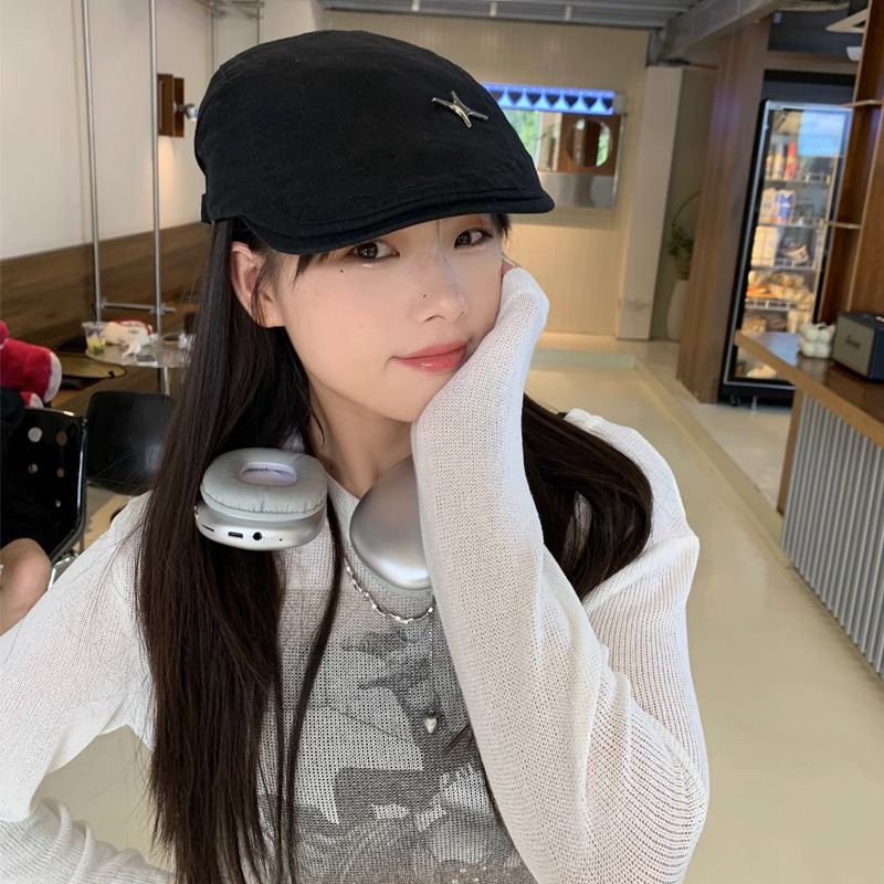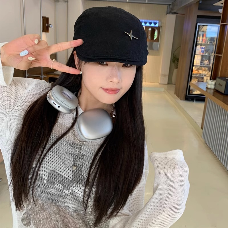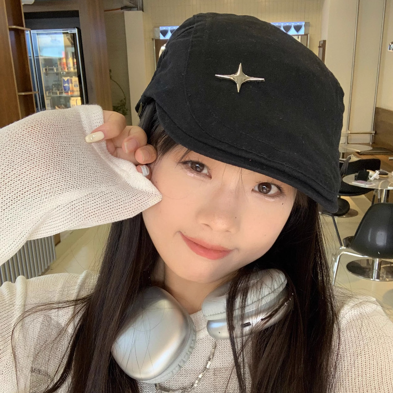 复古时髦纯色前进帽四角星短檐鸭舌帽报童帽鸭嘴帽贝雷帽女显脸小