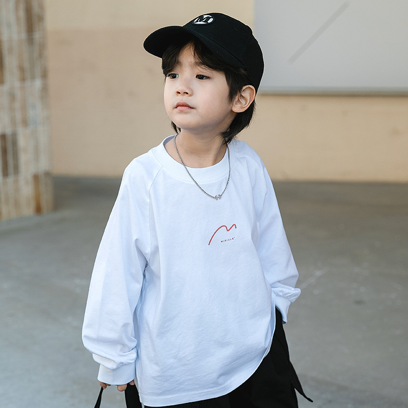 男童长袖T恤儿童春秋款打底衫男宝宝春装纯棉小童白色上衣春季潮