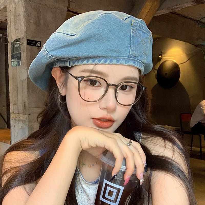 牛仔贝雷帽女夏季水洗做旧韩系复古大头围显脸小八角蓓蕾画家帽潮