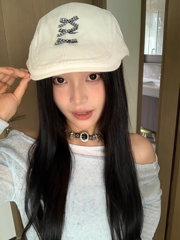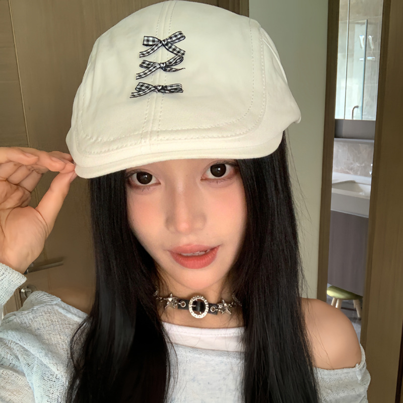 秋冬前进帽女小头围蝴蝶结日系画家帽大头围韩版百搭报童帽显脸小