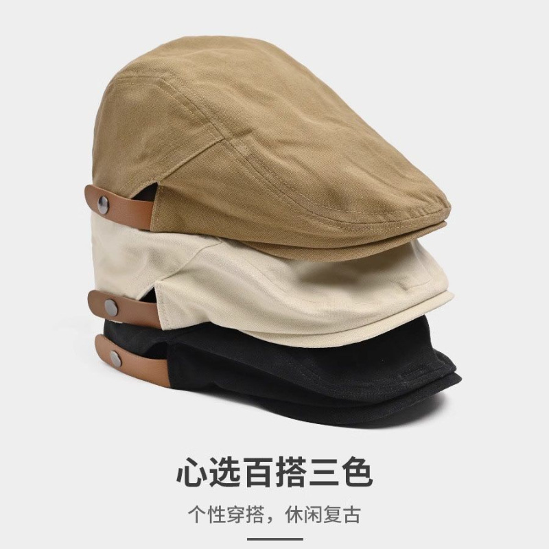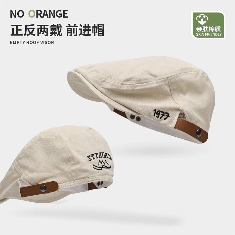 夏季薄款反戴白色贝雷帽男士英伦复古前进帽报童画家帽子女鸭舌帽