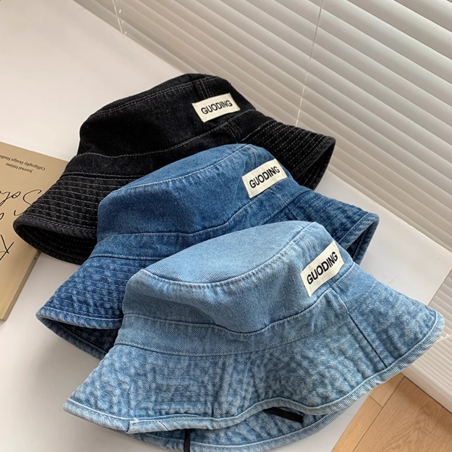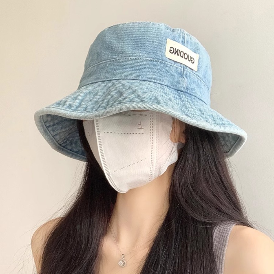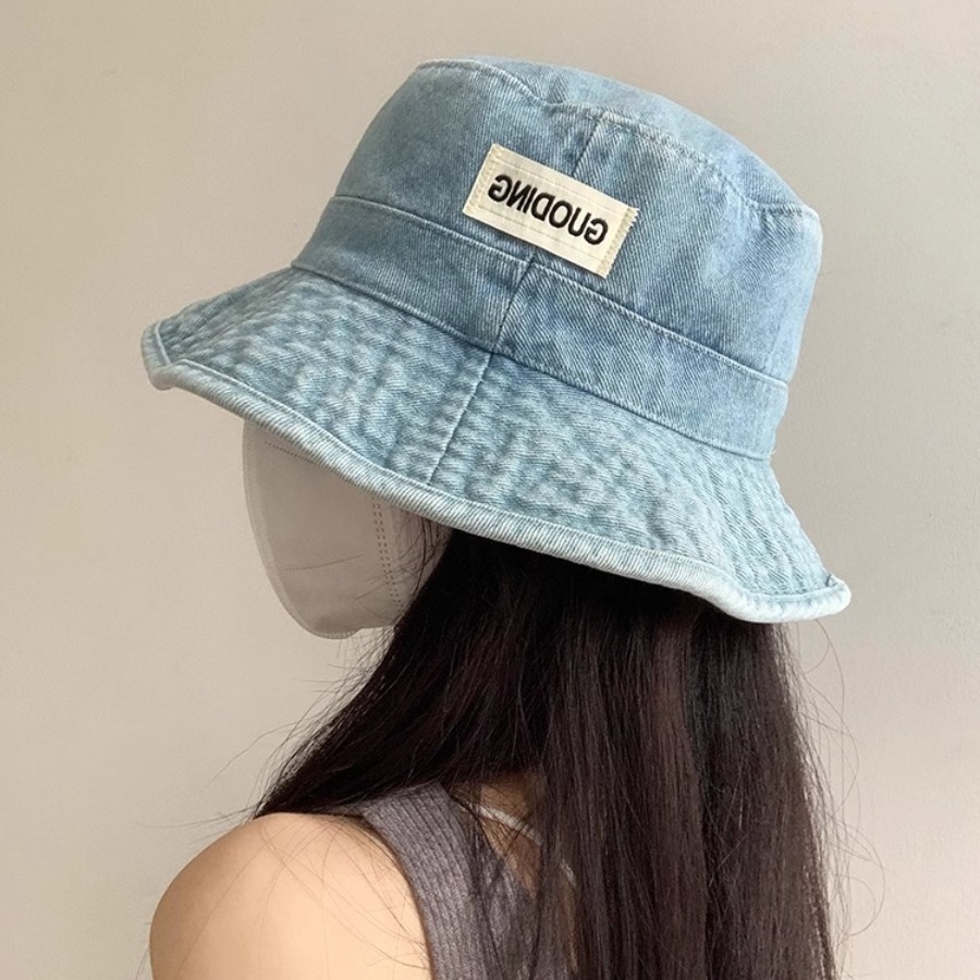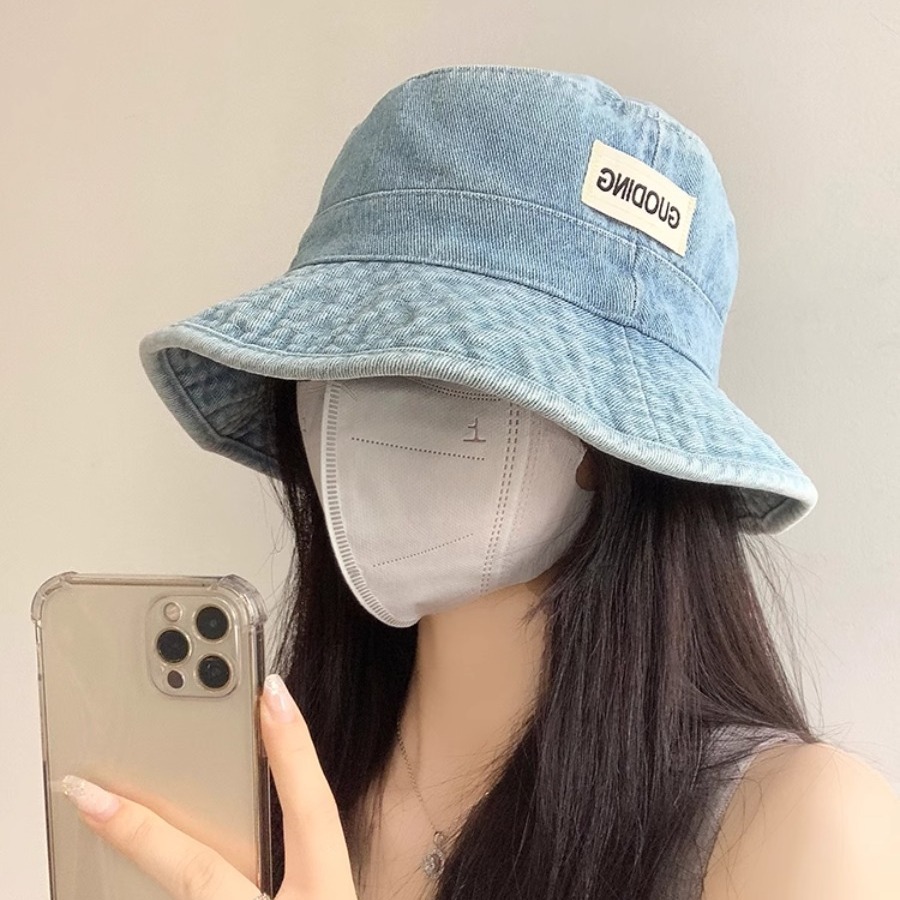 牛仔渔夫帽女夏季日系简约百搭显脸小盆帽遮阳防晒大头围素颜帽子