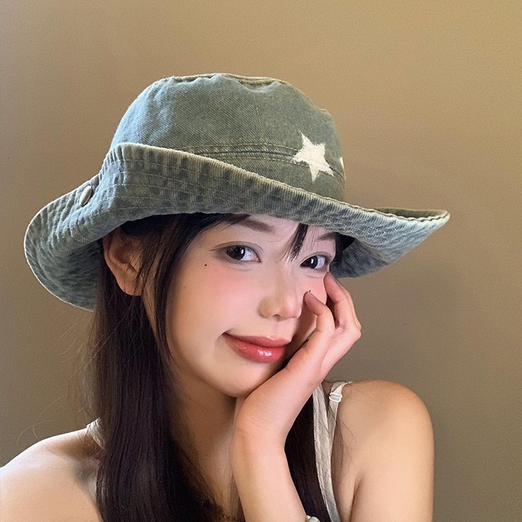 星星牛仔登山帽女春夏季户外露营遮阳防晒大檐渔夫帽西部牛仔帽子