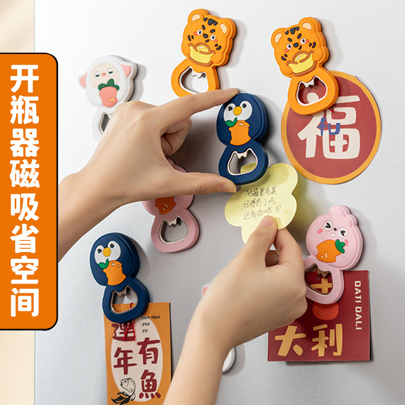 开瓶器家用冰箱贴啤酒起子多功能创意磁吸 PVC立体硅胶装饰贴