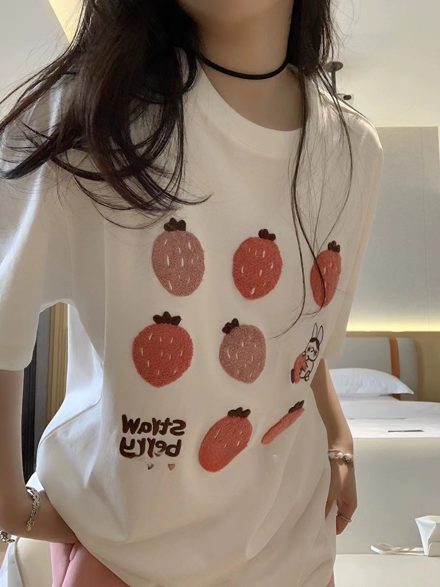 ADER草莓毛巾绣短袖T恤夏季女可爱半袖上衣小众潮牌圆领百搭T恤