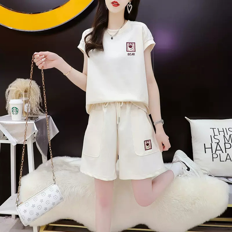 胖mm大码短裤套装一整套夏季新款t恤网红运动套装女两件套潮