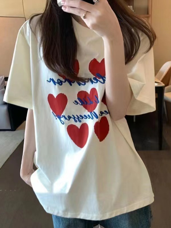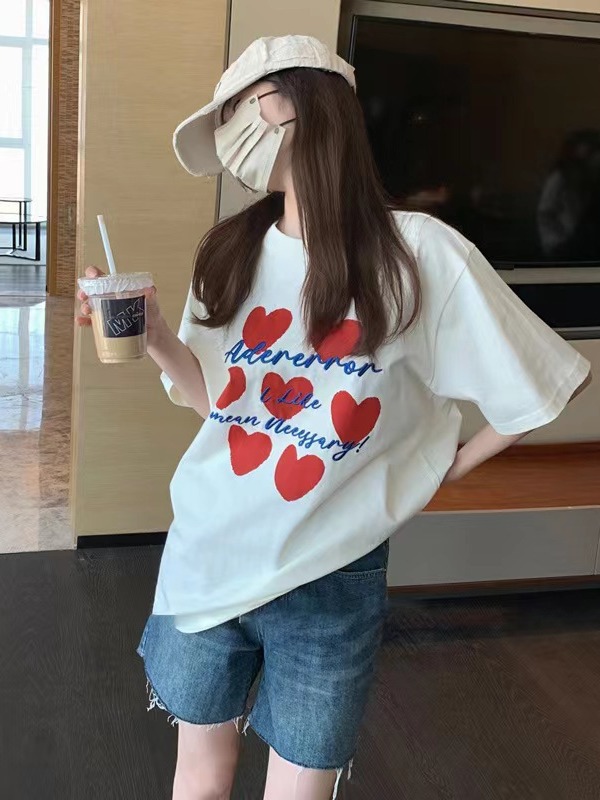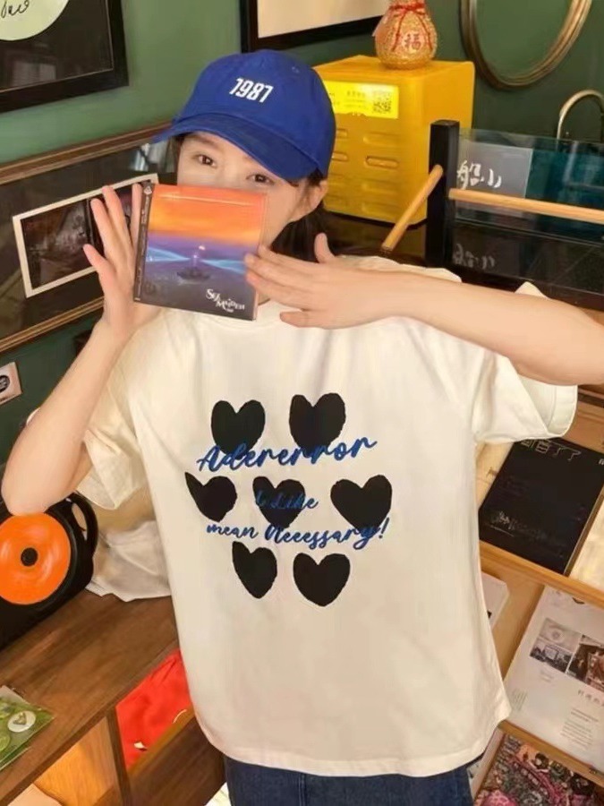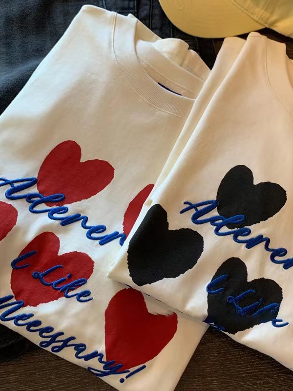 ADER爱心字母刺绣短袖女夏季潮牌韩版情侣款T恤oversize休闲上衣