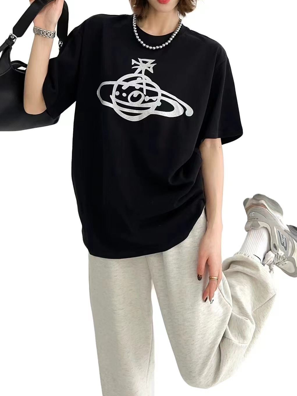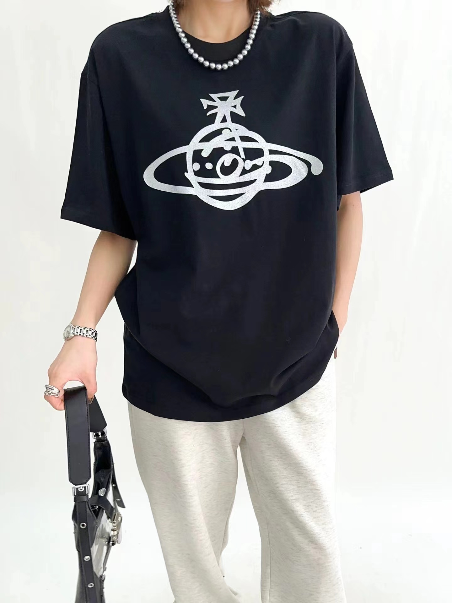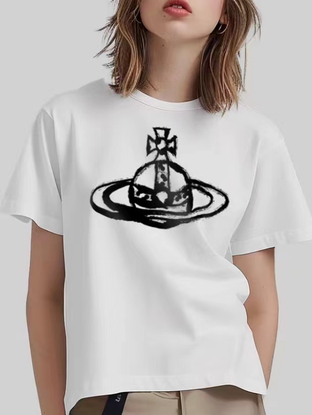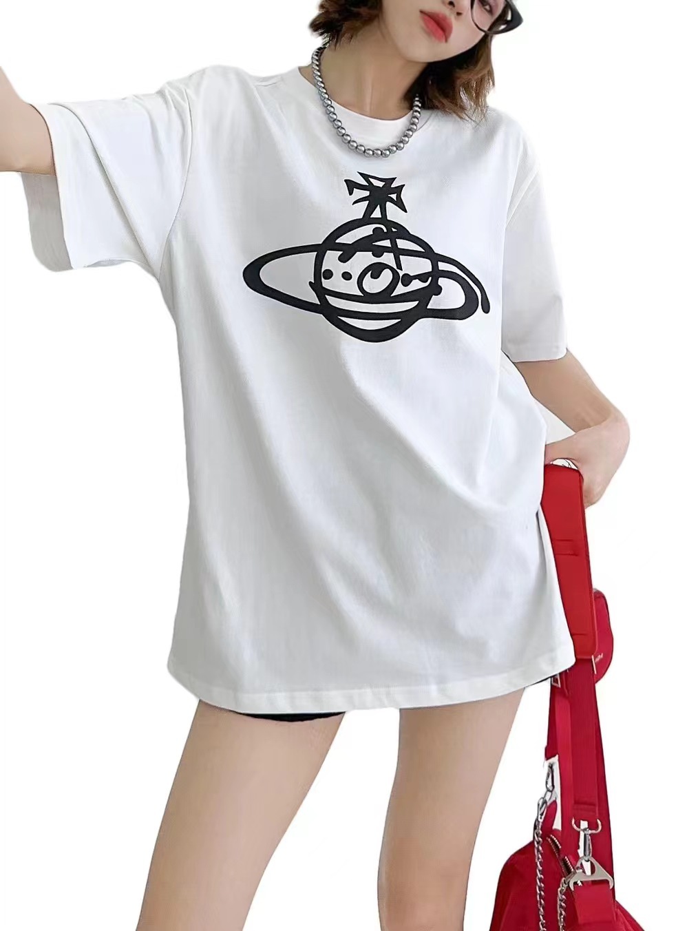 春夏新款圆领土星印花百搭宽松舒适薄款t恤打底衫男女同款潮