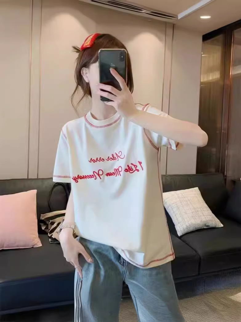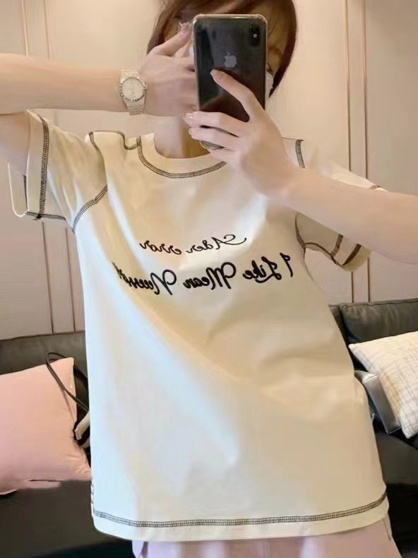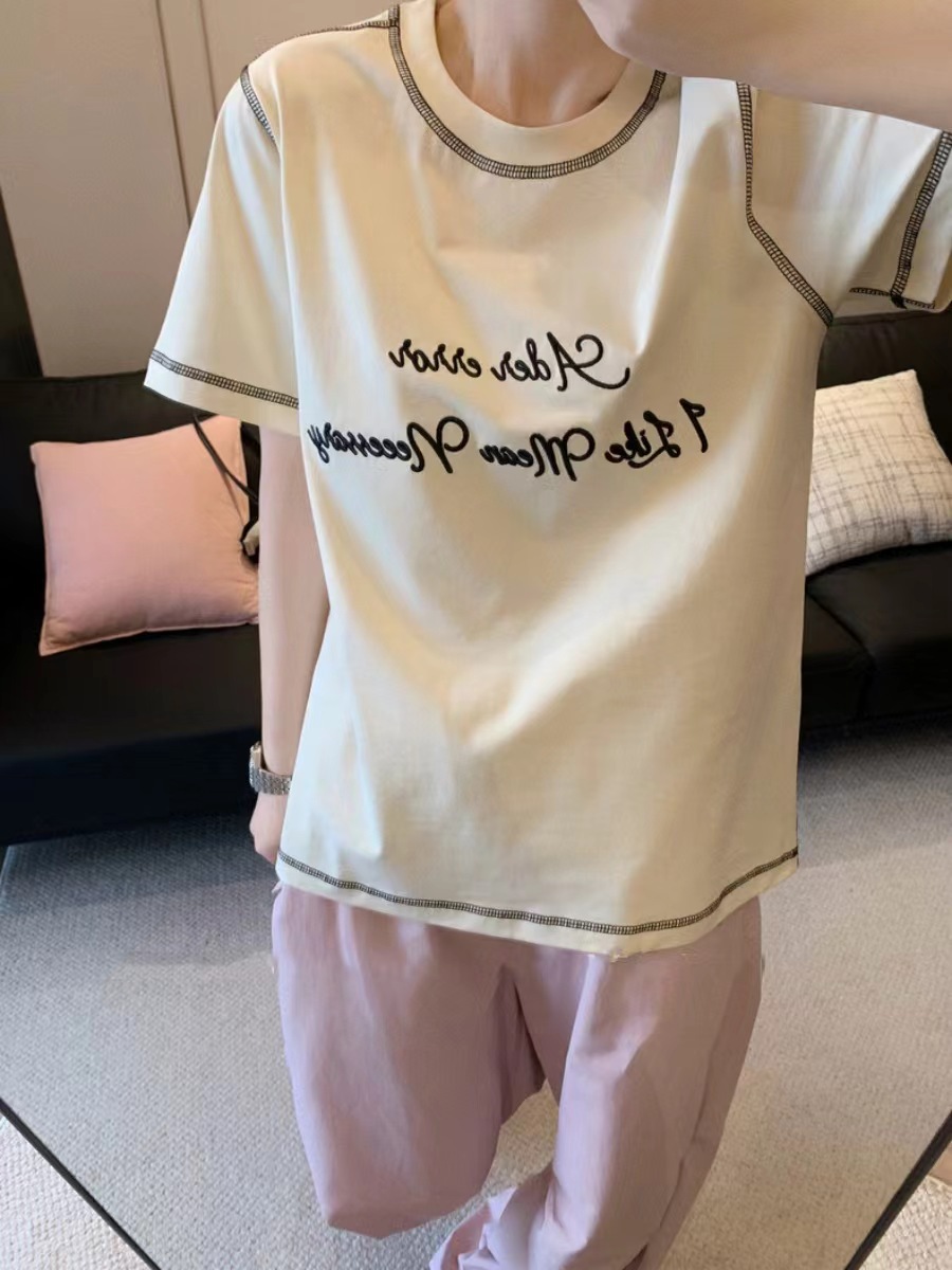 ader夏季字母刺绣T恤设计感撞色T恤韩版潮牌休闲简约男女同款即墨