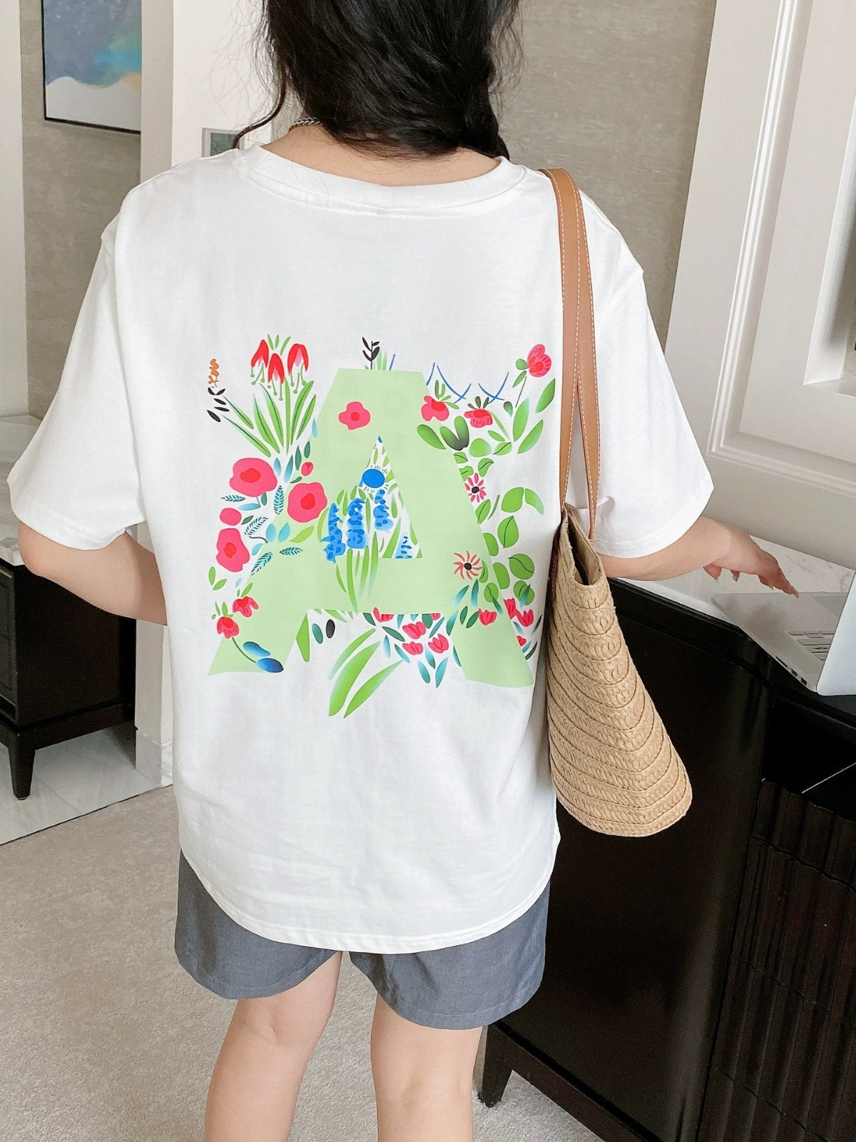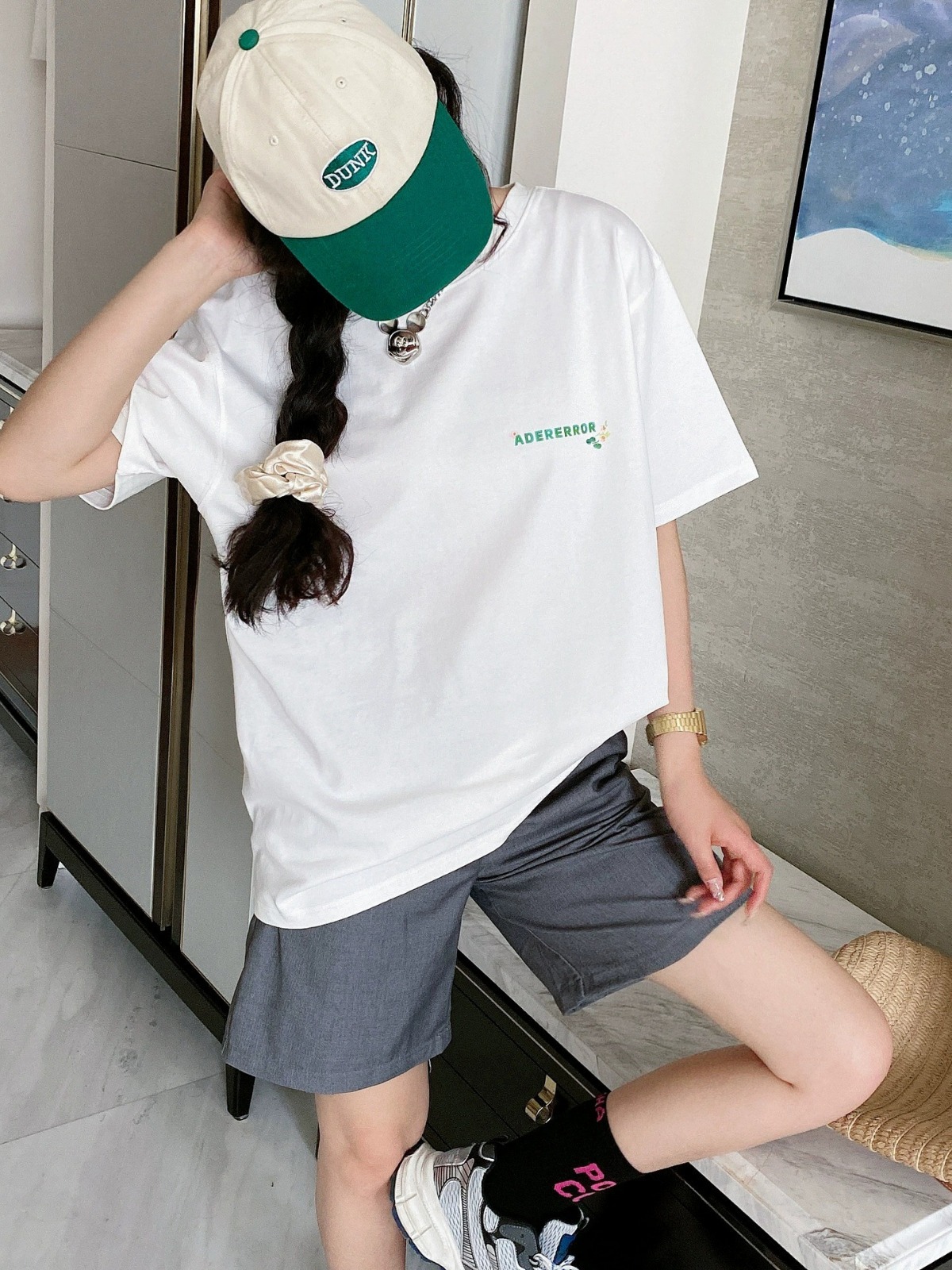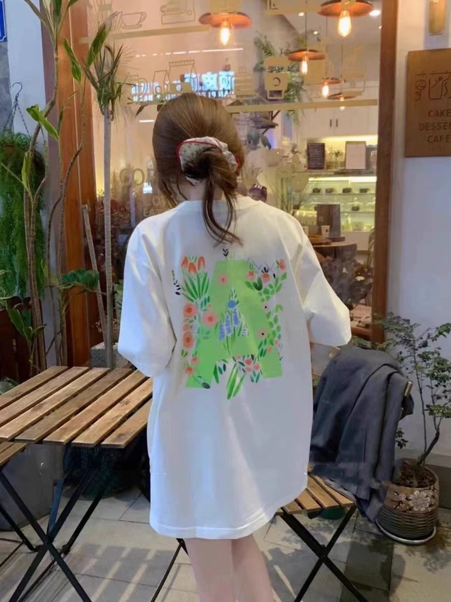 ADER花朵短袖女夏季宽松印花圆领纯棉T恤oversize潮牌小众百搭ins