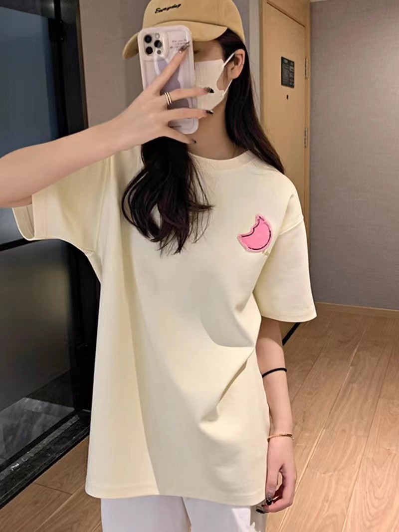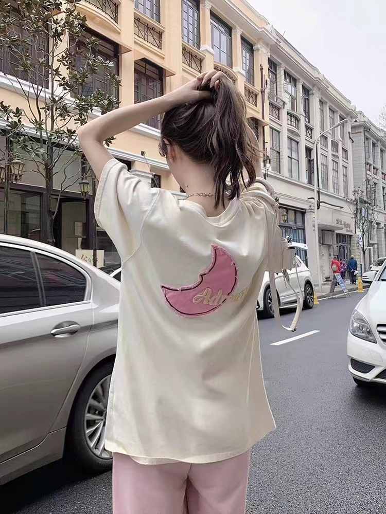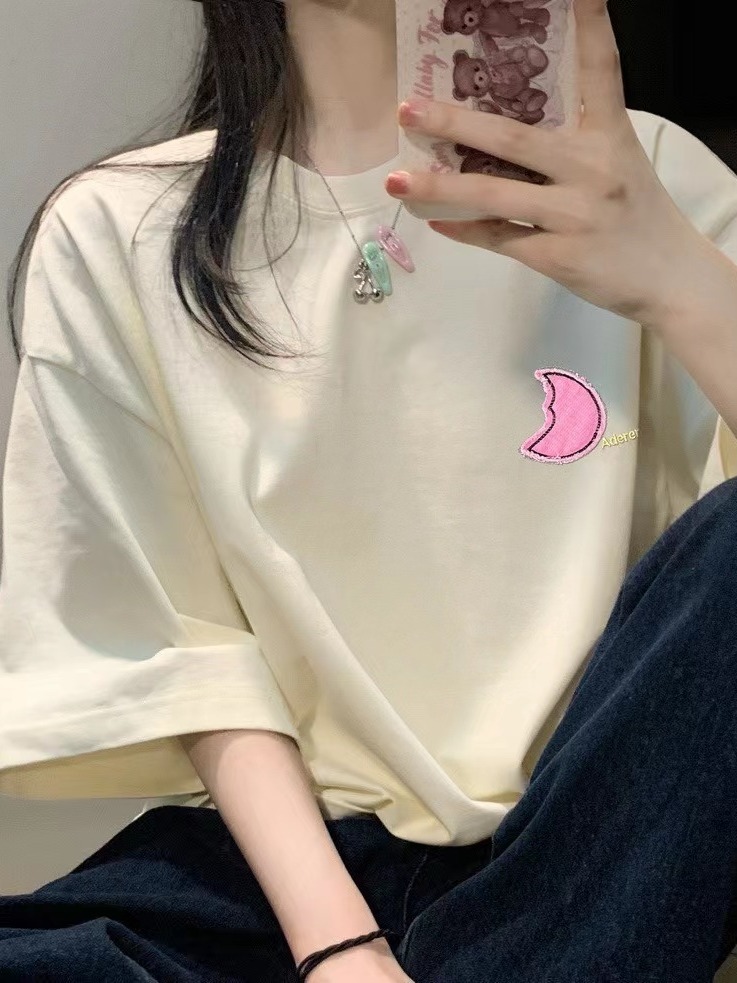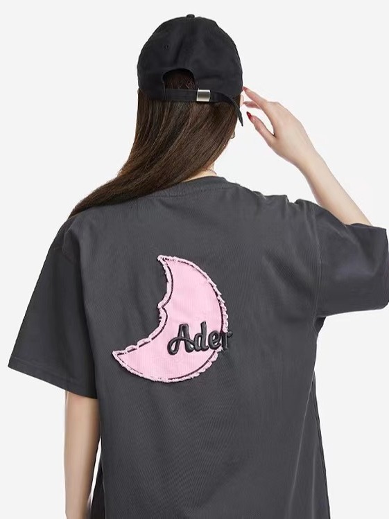 ADER月亮贴布短袖T恤字母刺绣潮牌设计感宽松圆领短袖情侣款百搭