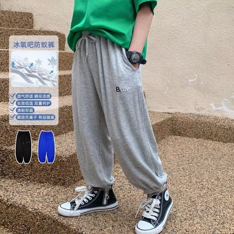 两件装儿童冰丝防蚊裤夏季薄款宽松男童运动裤子中大童刺绣长裤潮