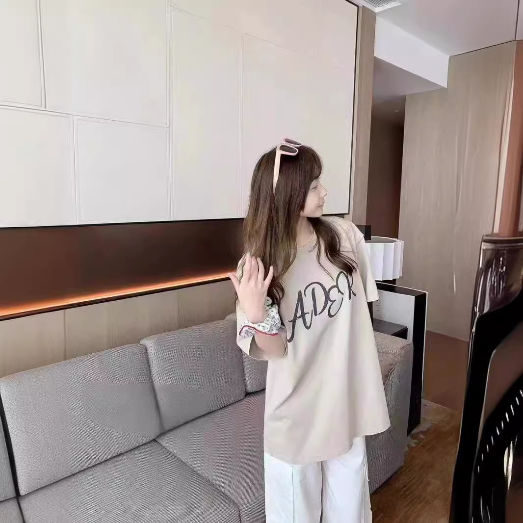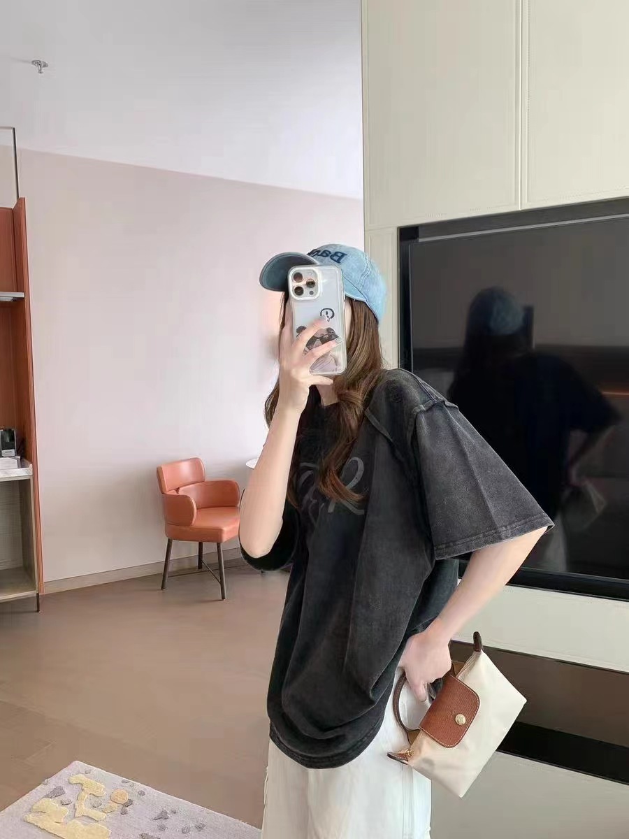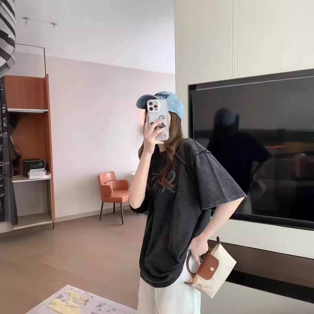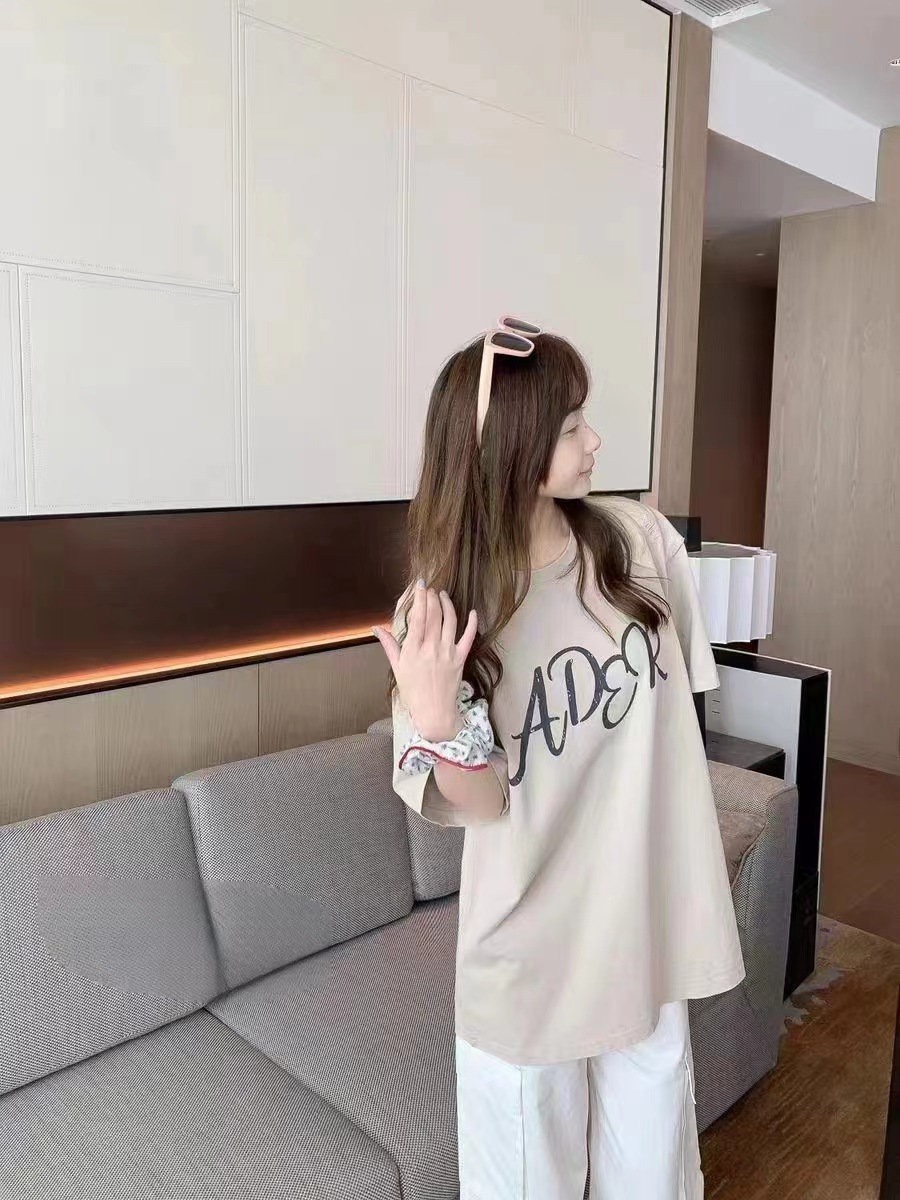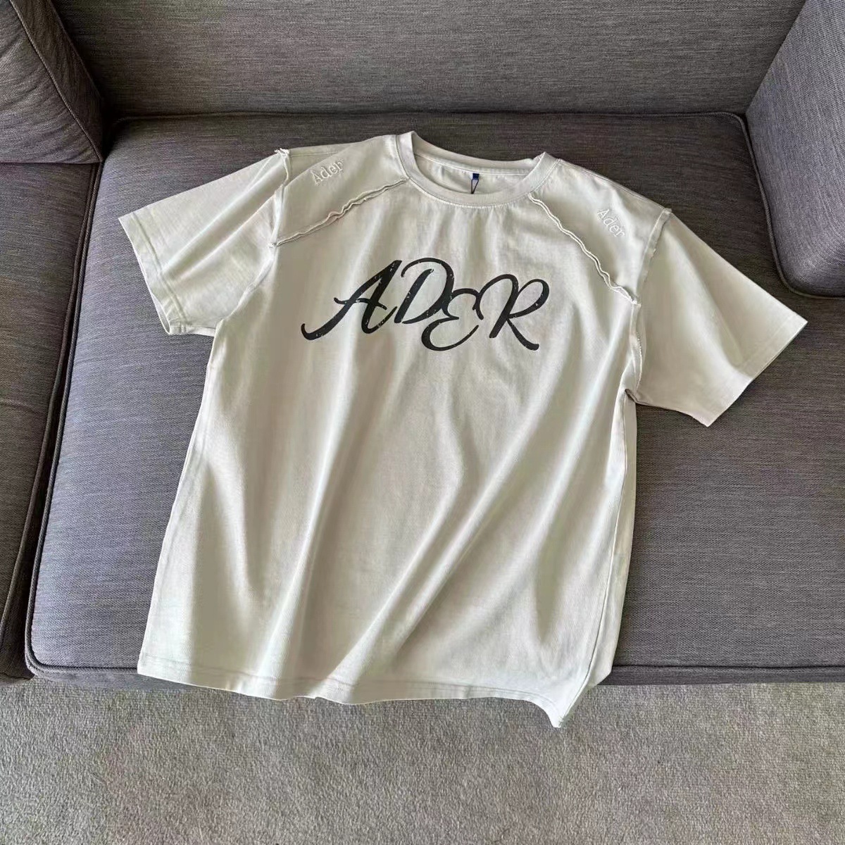 小众潮牌重磅字母短袖新款拼接设计T恤圆领宽松休闲袖T恤情侣上衣