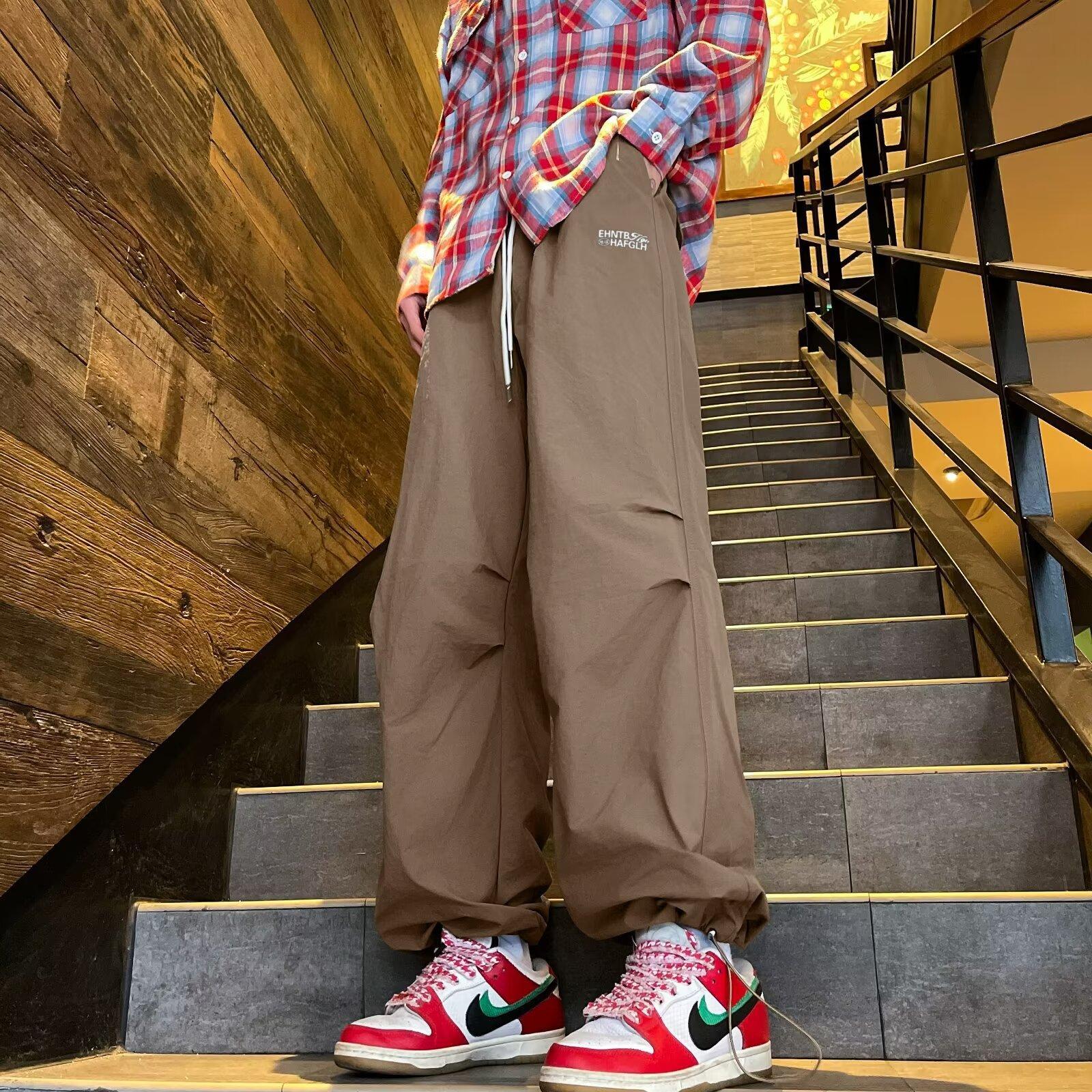 咖啡色运动裤男生简约百搭潮牌直筒休闲裤夏季宽松抽绳裤脚休闲裤