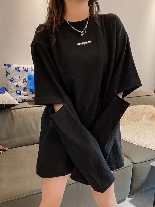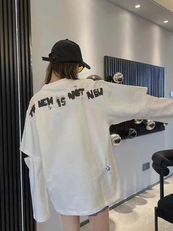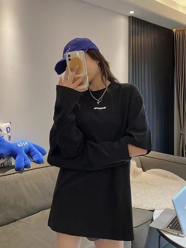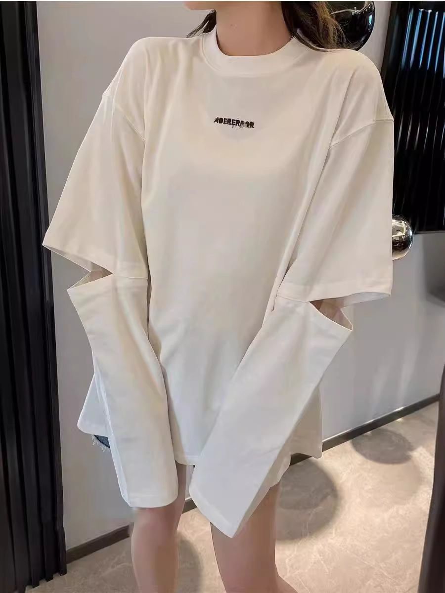 潮牌ader字母涂鸦印花假两件打底衫春秋韩版宽松男女同款长袖T恤