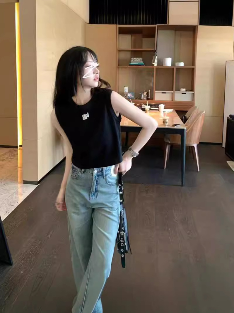 即墨现货ader无袖上衣夏季字母吊带背心高腰露脐气质潮牌设计感
