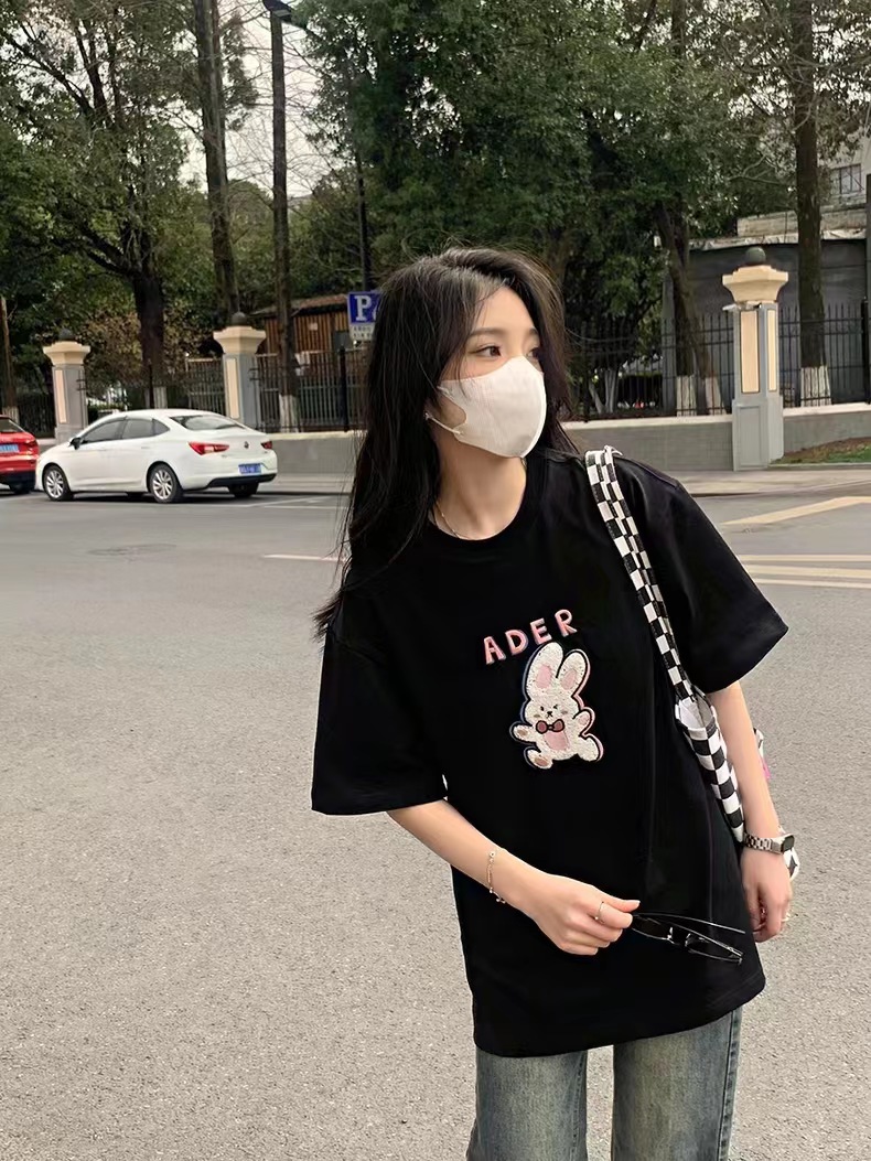 ADER韩系毛巾绣兔子短袖T恤潮牌夏季宽松男女同款情侣T恤百搭ins