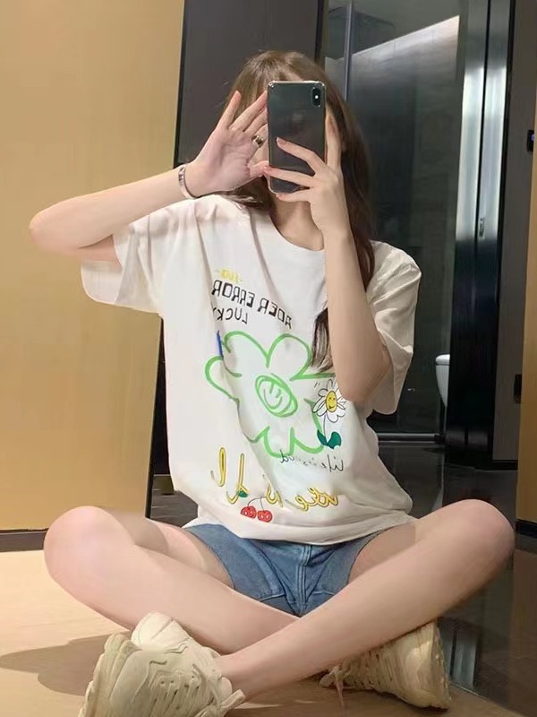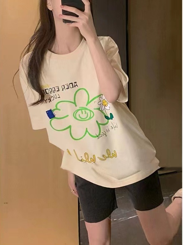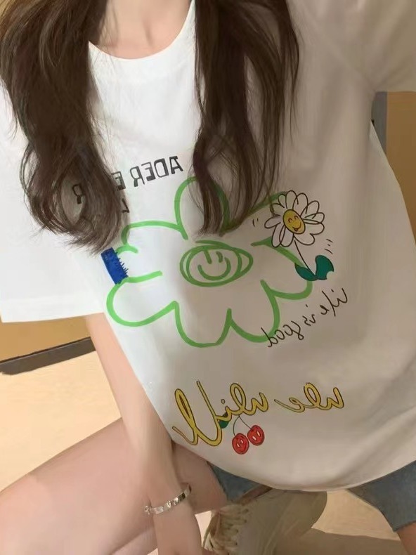 ader笑脸涂鸦花朵短袖女夏季潮牌宽松显瘦男女同款情侣短袖T恤ins