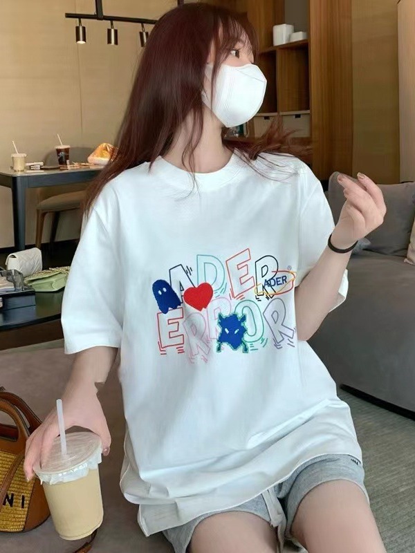 ader彩色字母印花短袖女夏季oversize潮牌设计感简约情侣T恤百搭