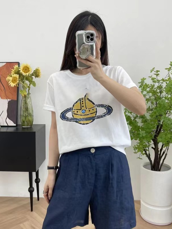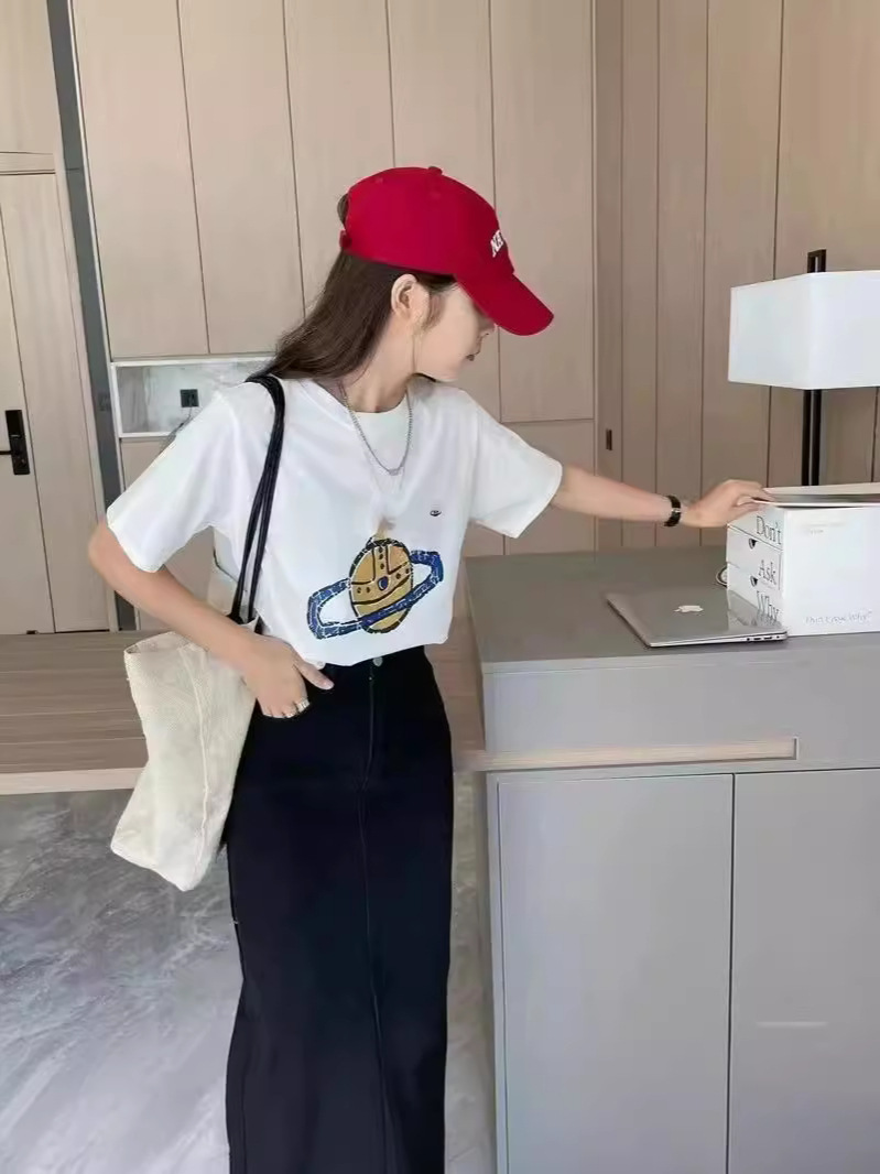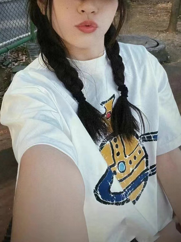 即墨 春夏新款土星印花短袖T恤潮牌宽松休闲男女情侣同款短袖上衣