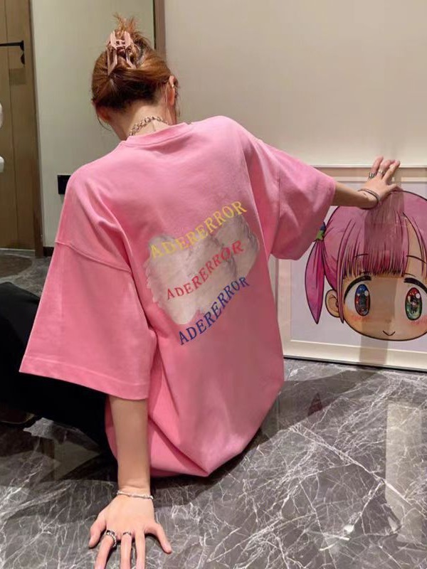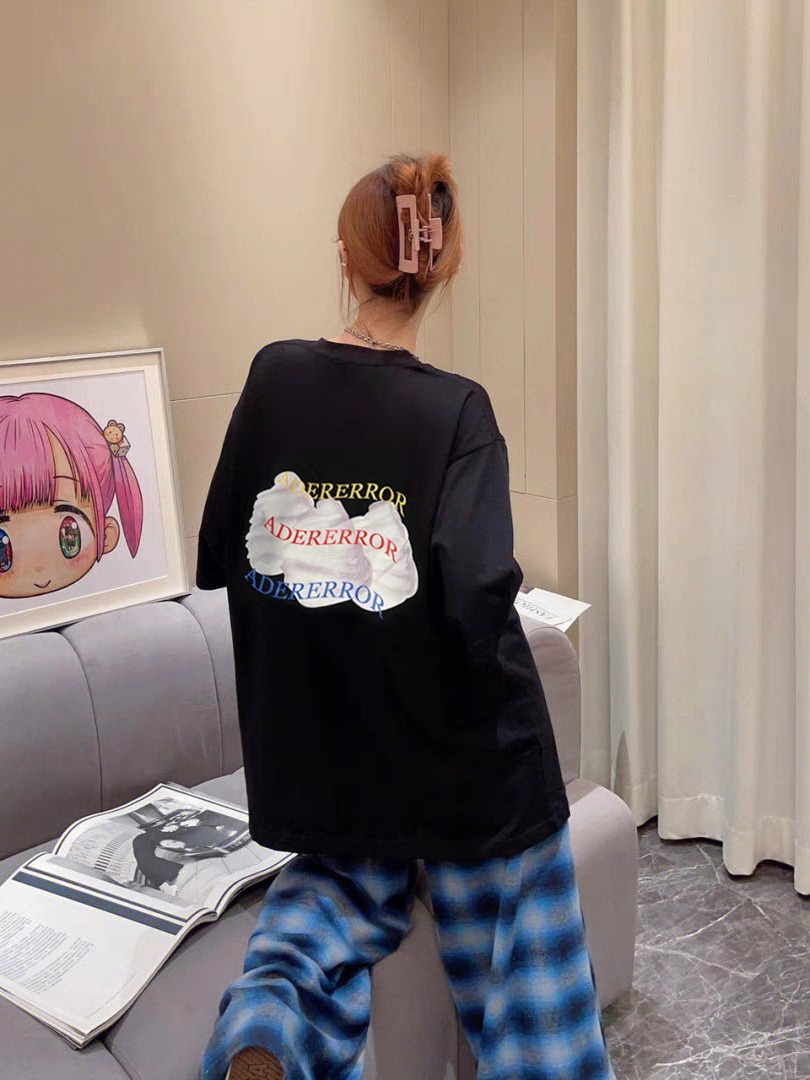 ader白色后背奶油印花短袖T恤男女同款潮牌宽松休闲字母彩绘T恤