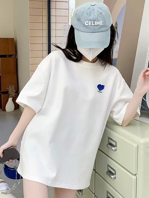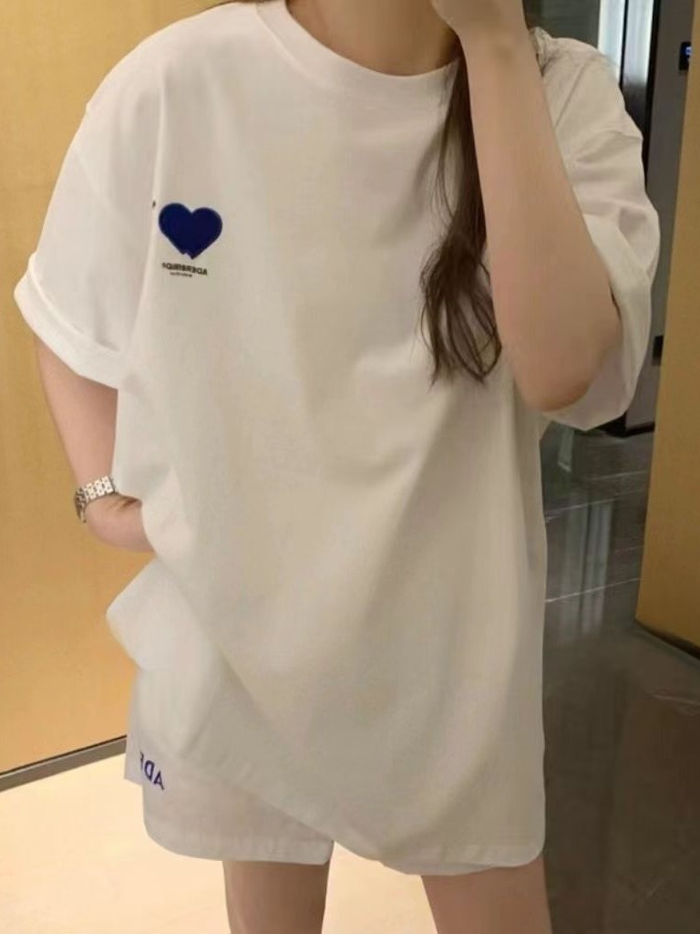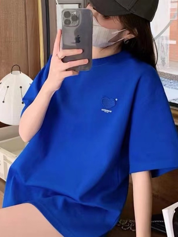 ader爱心刺绣T恤克莱因蓝圆领情侣短袖夏季女纯色上衣潮牌韩版ins