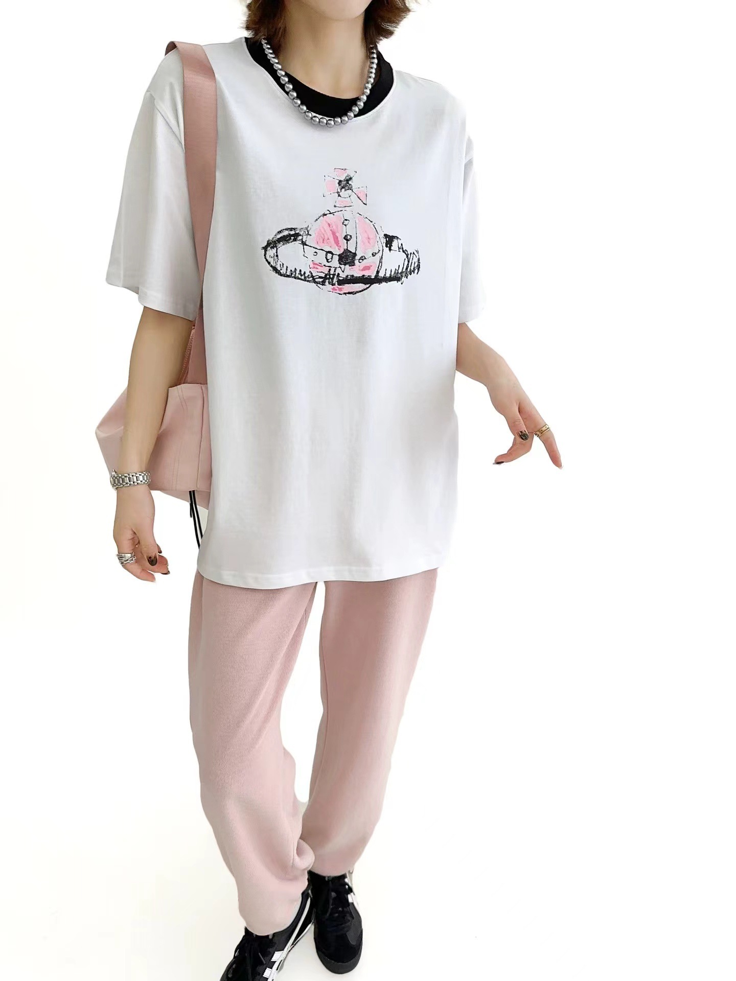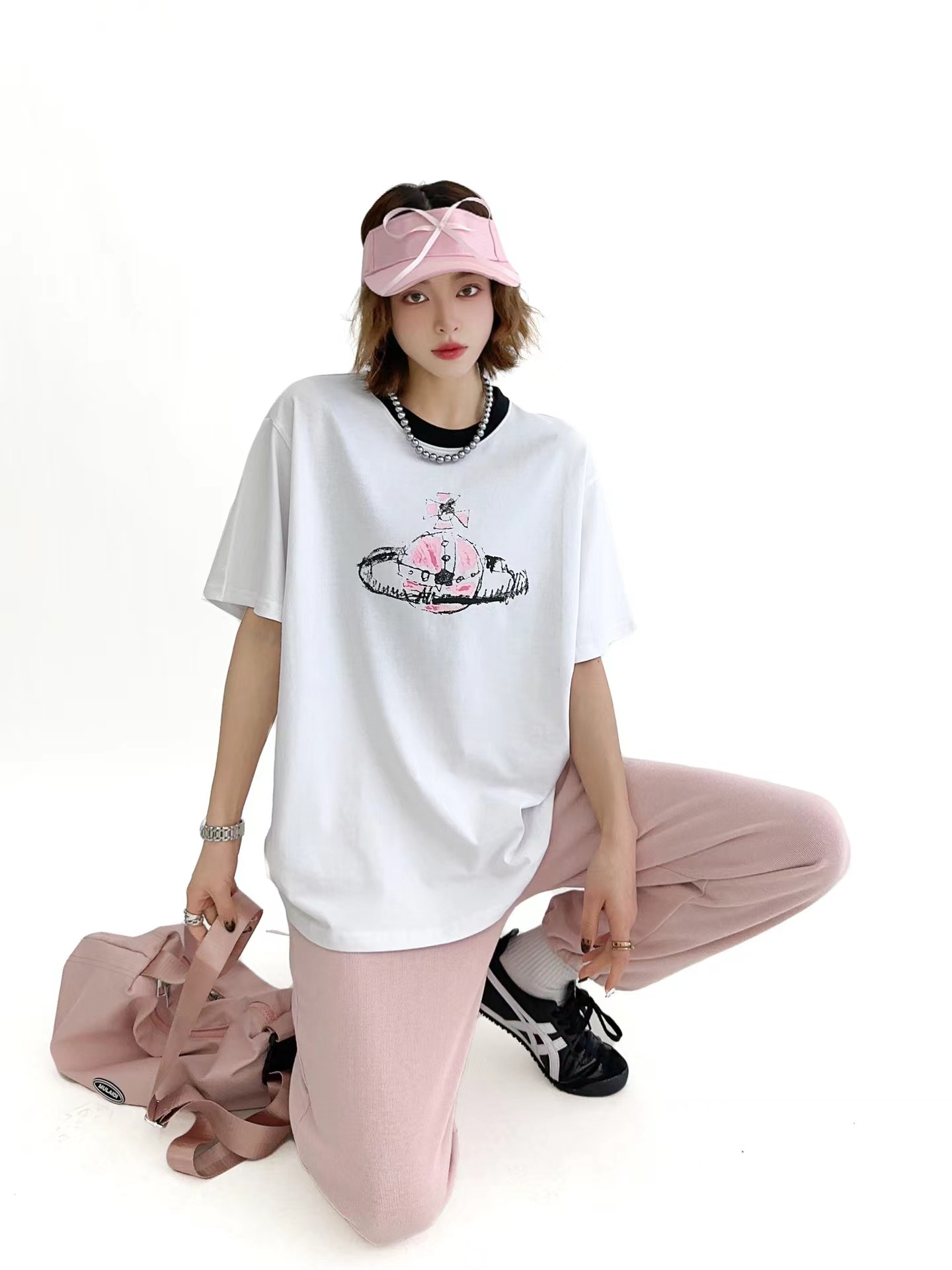 潮牌春夏新款土星印花短袖t恤潮牌宽松百搭休闲男女情侣款短袖上