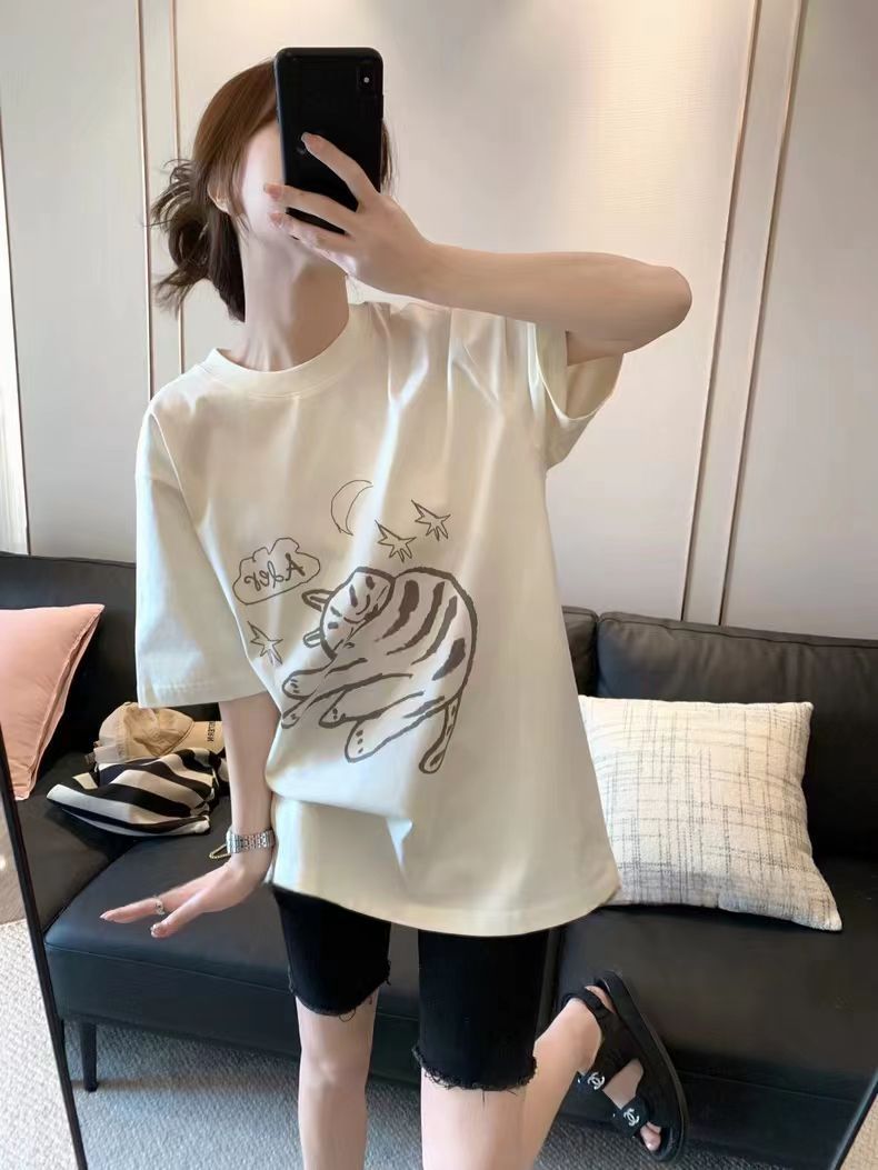ader卡通猫咪印花短袖T恤女宽松夏季纯棉情侣T恤潮牌设计感小众