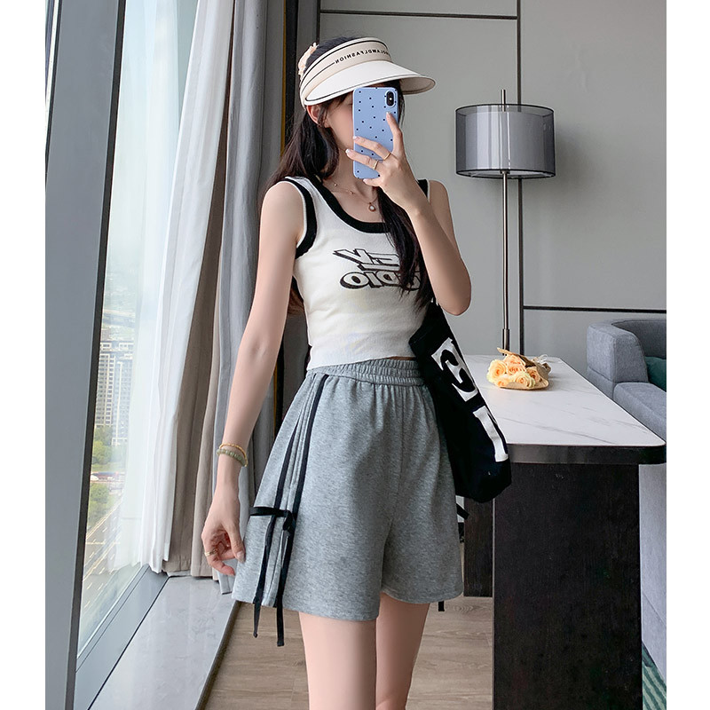 美式运动短裤夏季新款宽松bf慵懒风高腰小个子休闲灰色五分裤