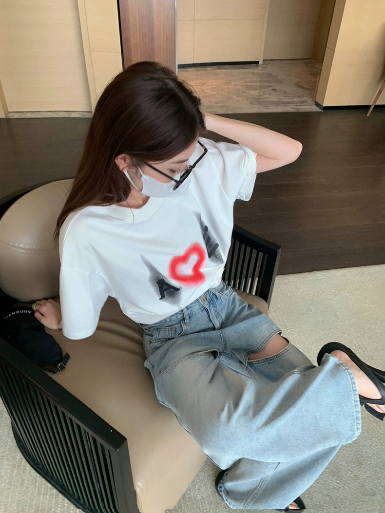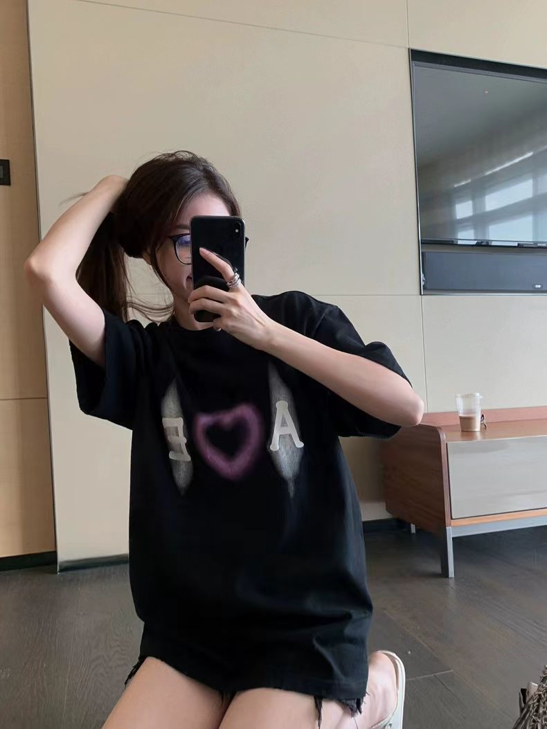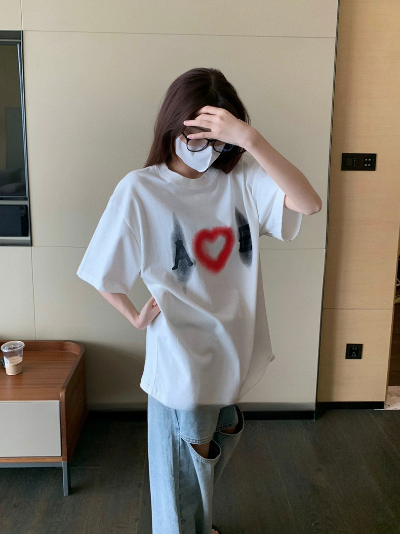 即墨爱心涂鸦爱心短袖t恤24年春夏季新款短袖男女同款情侣T恤现货