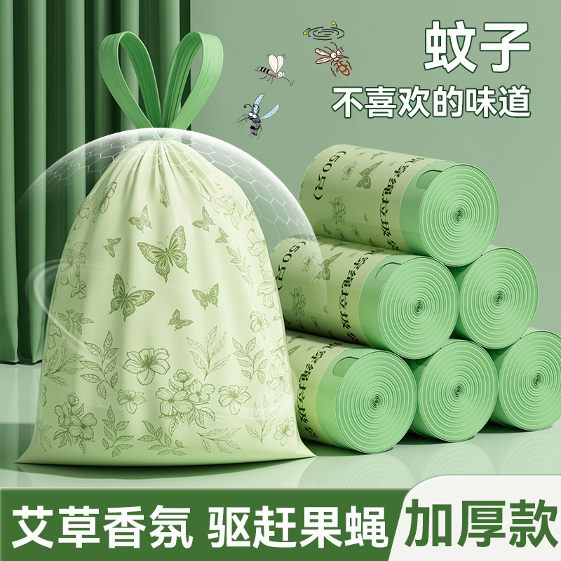艾草驱蚊垃圾袋100只家用抽绳式免撕垃圾袋加厚不易破抽绳垃圾袋