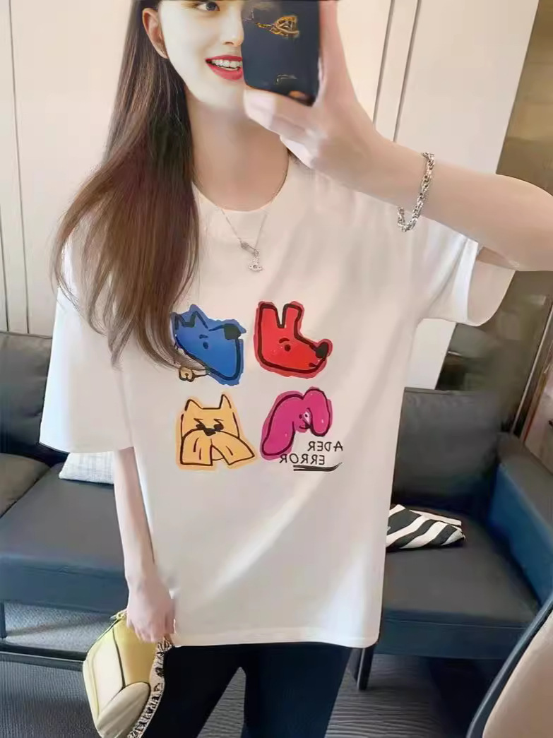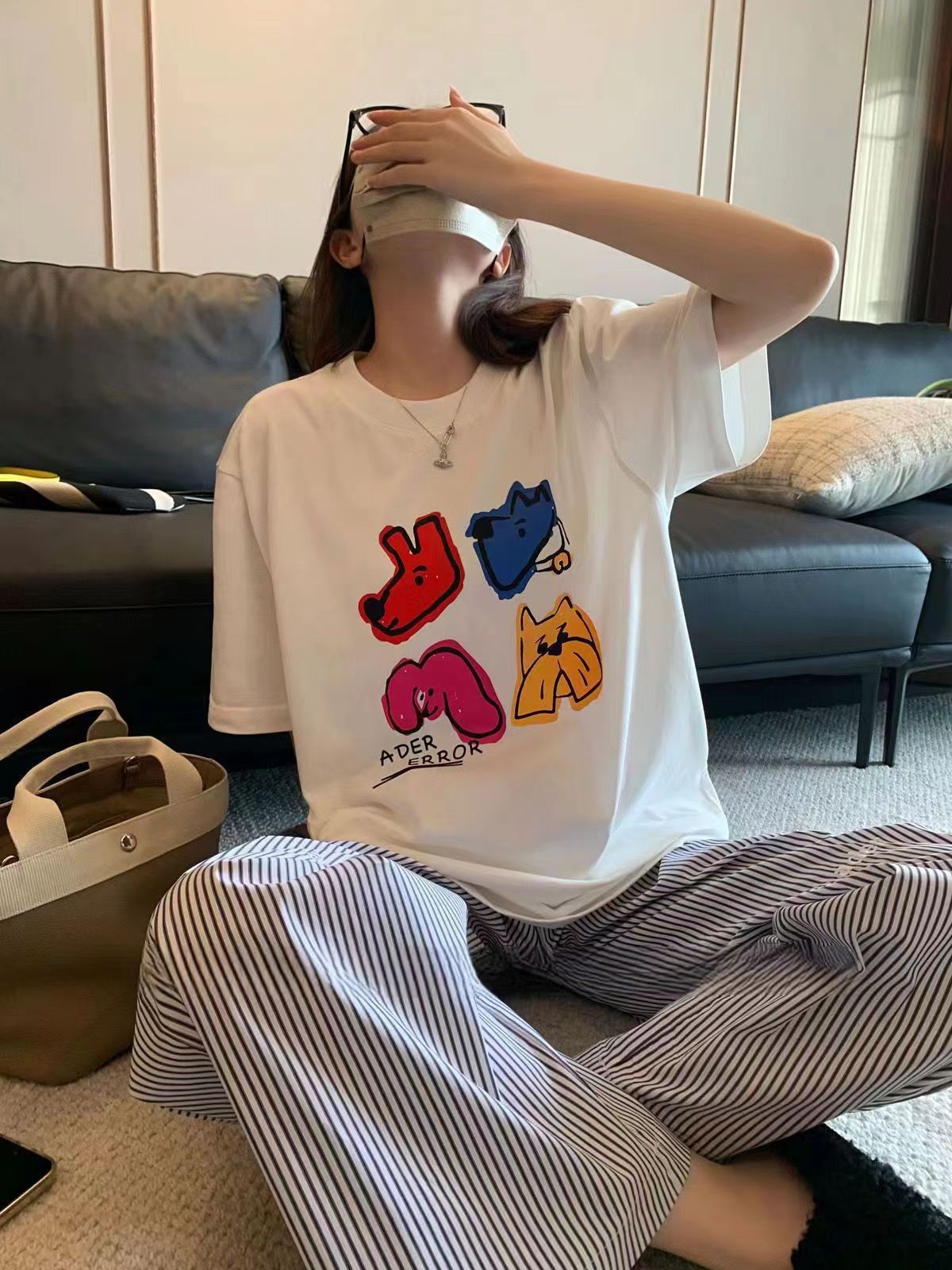 ader趣味卡通小狗印花短袖夏季女oversize休闲T恤男女同款潮牌ins