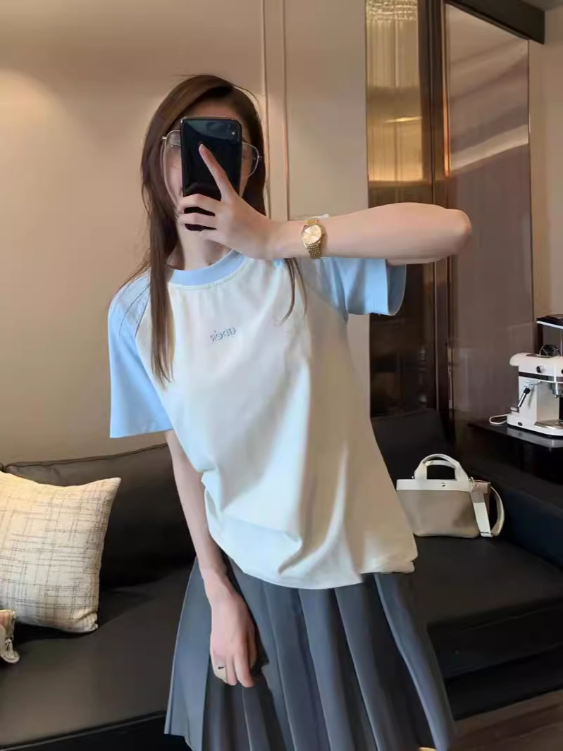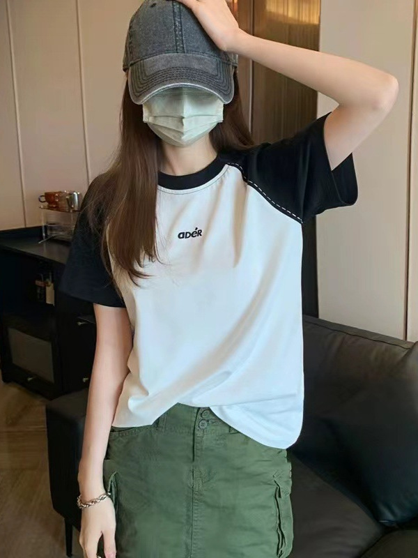 即墨现货ader撞色插肩袖T恤夏季短袖女宽松小众潮牌设计感半袖T恤