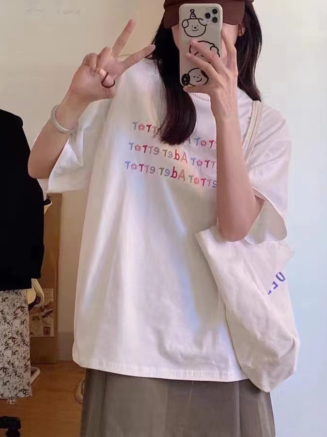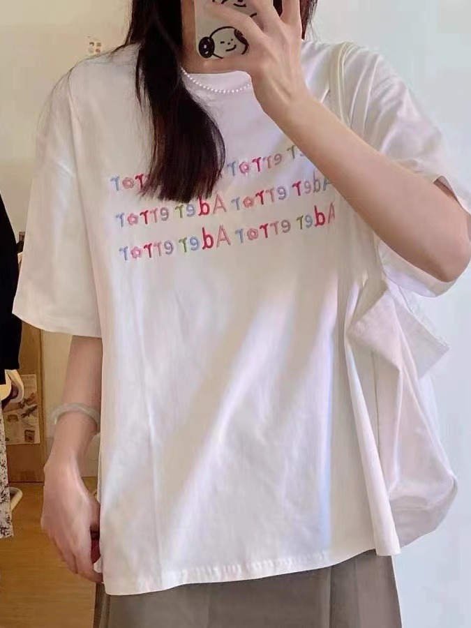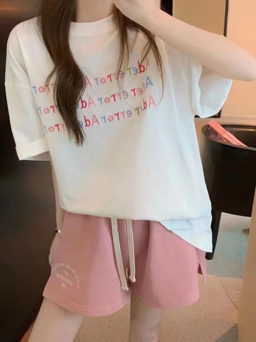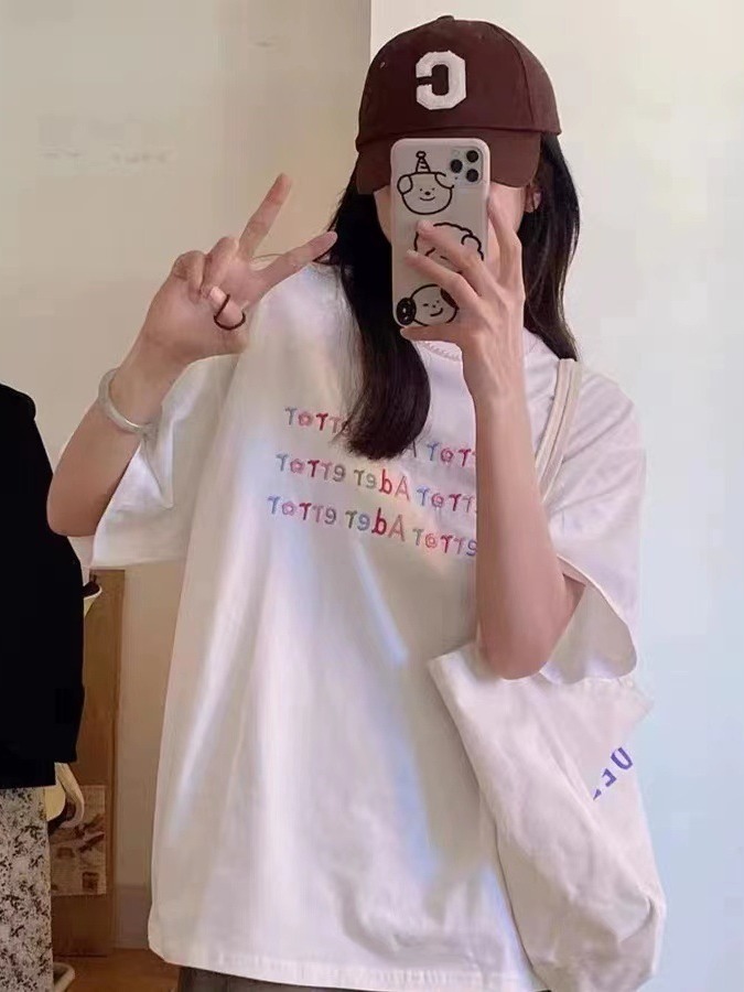 ader短袖彩色字母刺绣夏季多巴胺穿搭美式复古潮牌男女情侣T恤ins