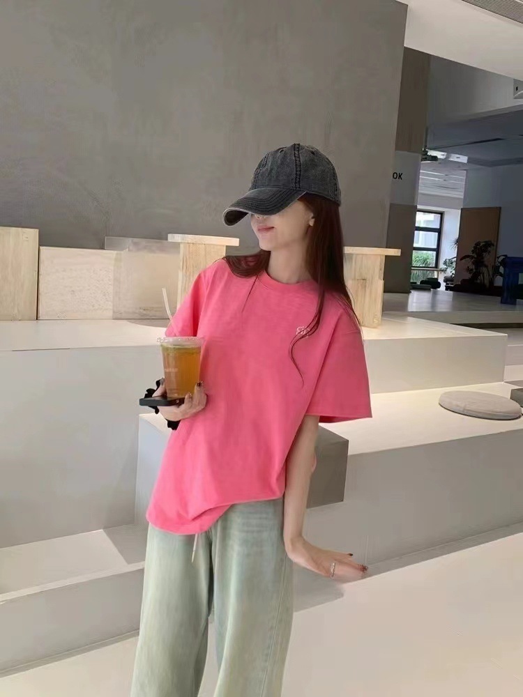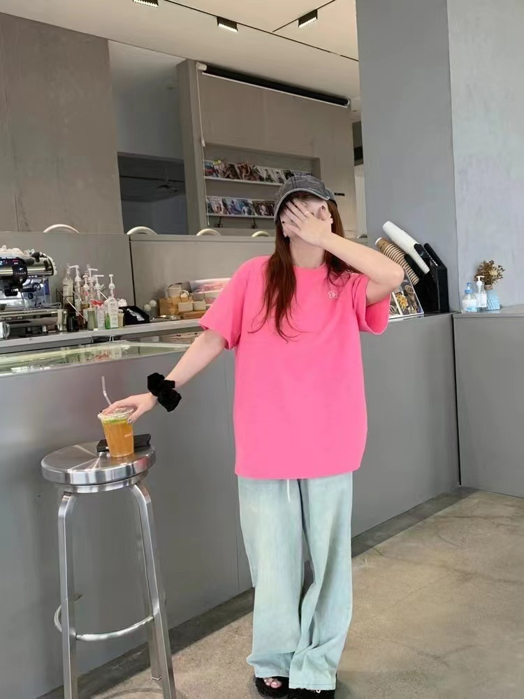 即墨现货ADER竹节棉正肩短袖T恤韩版夏季蝴蝶刺绣显瘦短袖上衣女