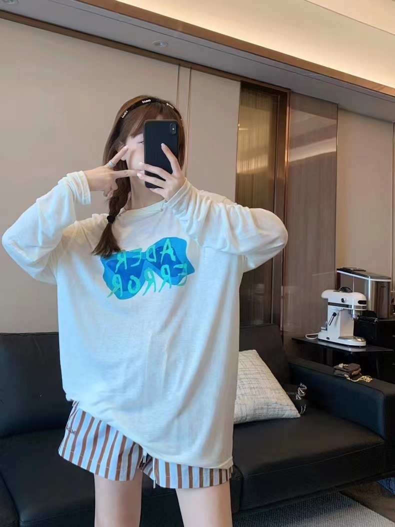 即墨现货ader字母印花薄款长袖t恤夏季外搭罩衫宽松休闲女防晒衣