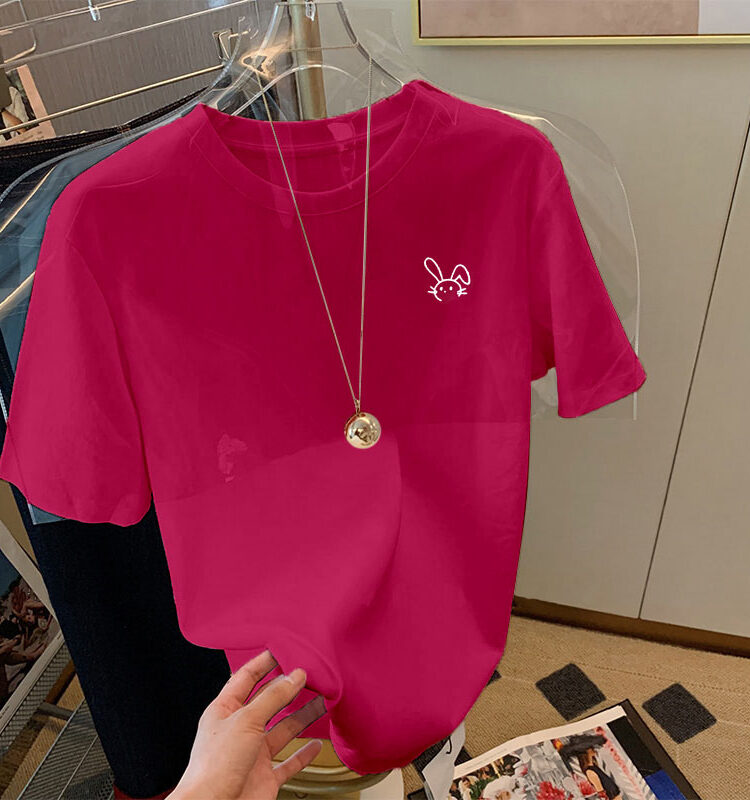 春季新款火龙果色纯棉短袖t恤女宽松百搭时尚洋气简约上衣潮