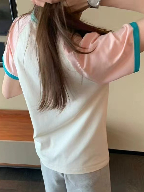 ader撞色圆领正肩T恤夏季女设计感插肩短袖宽松纯棉T恤即墨