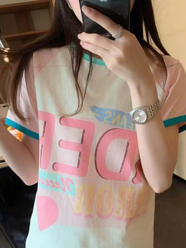 夏季新款短袖印花女装T恤ins宽松显瘦百搭上衣纯棉圆领打底衫