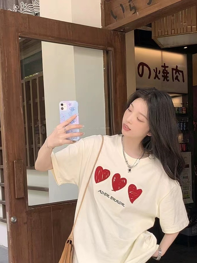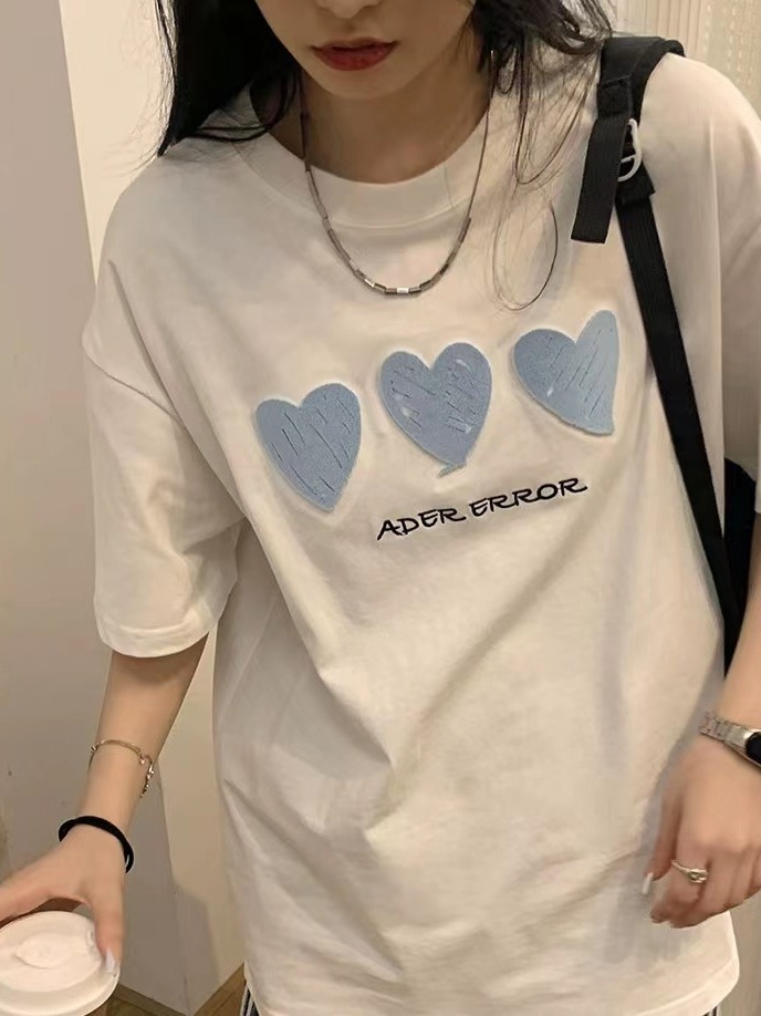 正确版ADER爱心立体刺绣T恤棉质宽松短袖情侣同款休闲短袖小众潮