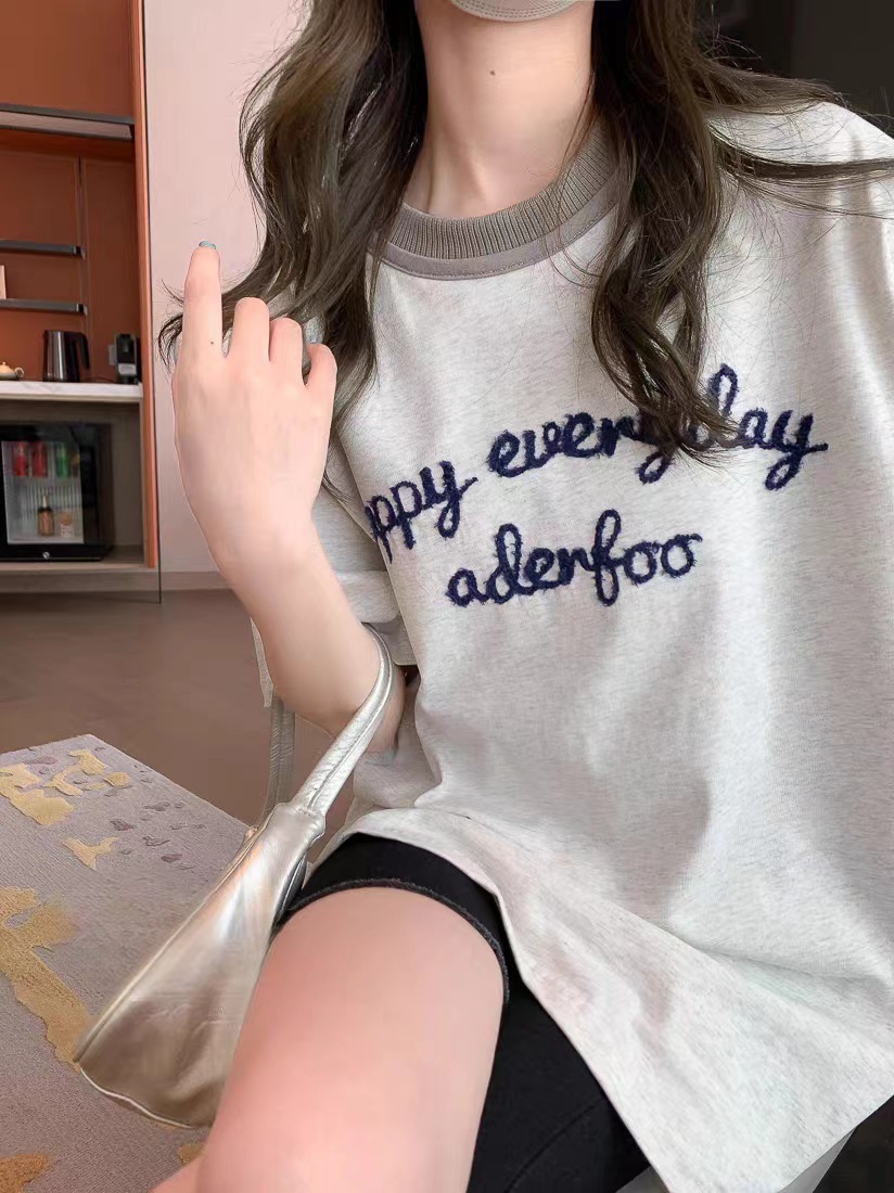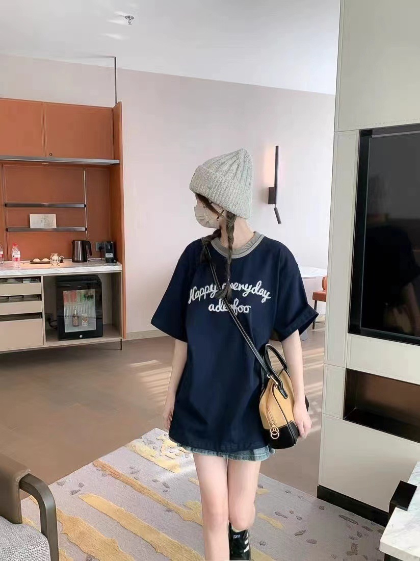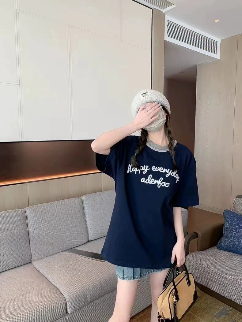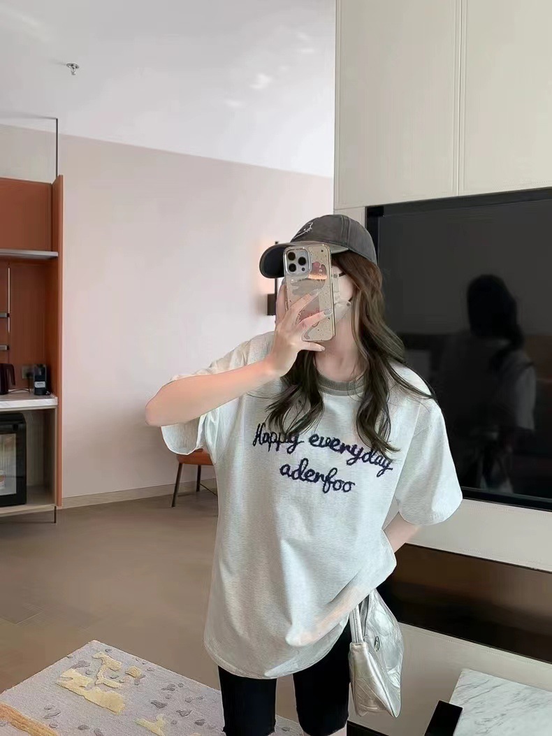 即墨夏季ADER短袖t恤女小众设计撞色复古刺绣字母宽松情侣短袖女